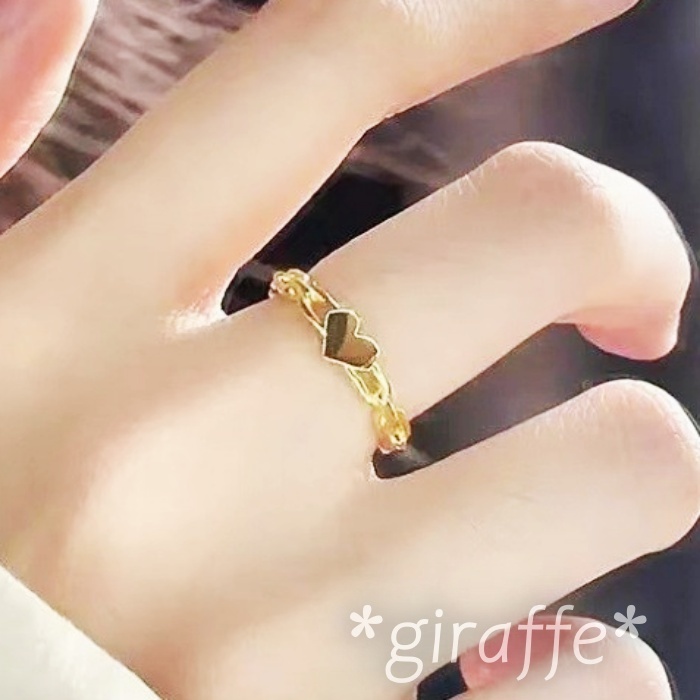 A851 匿名配送 指輪 レディース リング ゴールド ハート チェーン s925 フリーサイズ サイズ調節可能