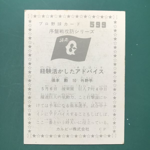 1976年 カルビー プロ野球カード 76年 599番 巨人 張本    -WWG97