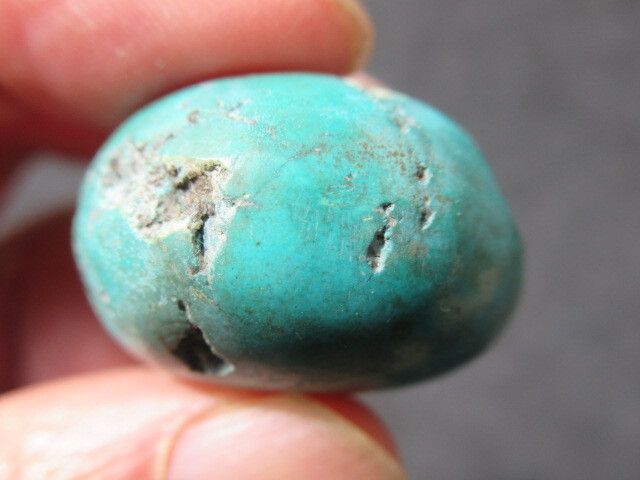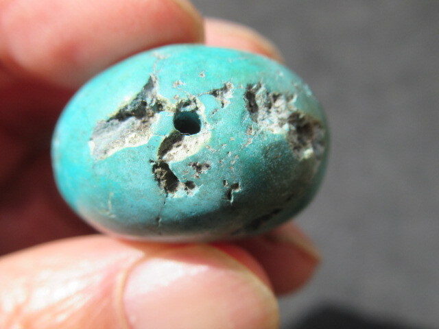 使い込まれて母岩部分が虫喰い状に欠落したチベタンターコイズですが使用に耐える状態です。サイズ27/25/18mm、重さ14,3g。送料無料。