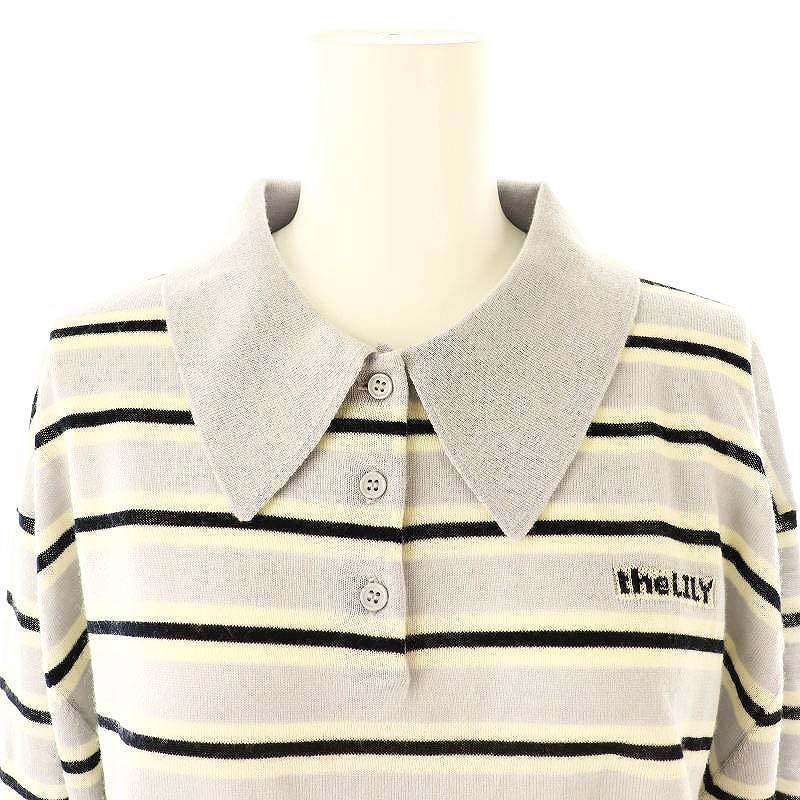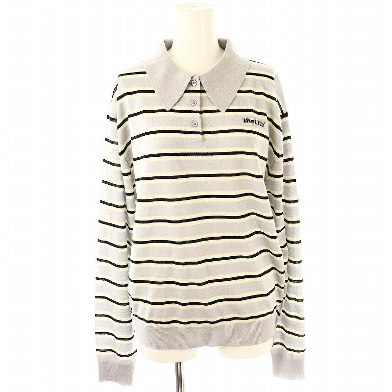 リリーブラウン Lily Brown 24AW セミシアーラガーニット ボーダー 長袖 F 水色 白 ホワイト /AT ■OS レディース