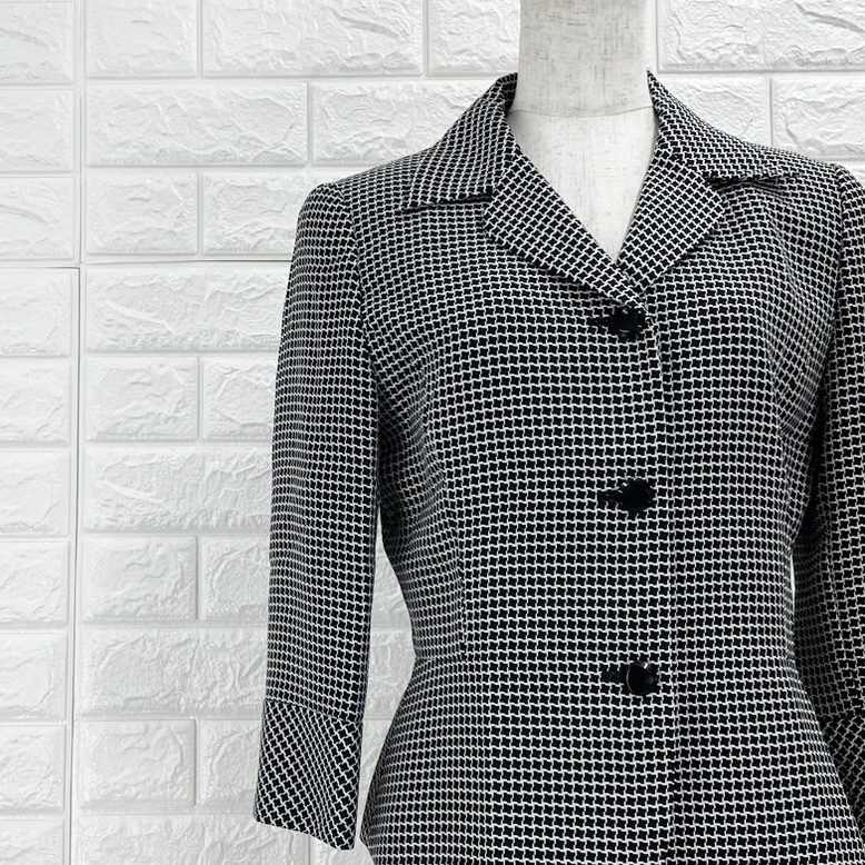 【A3426】FRANCO FERRARO フランコフェラーロ テーラードジャケット レディース 千鳥格子柄 モノトーン カジュアル 春秋 Sサイズ