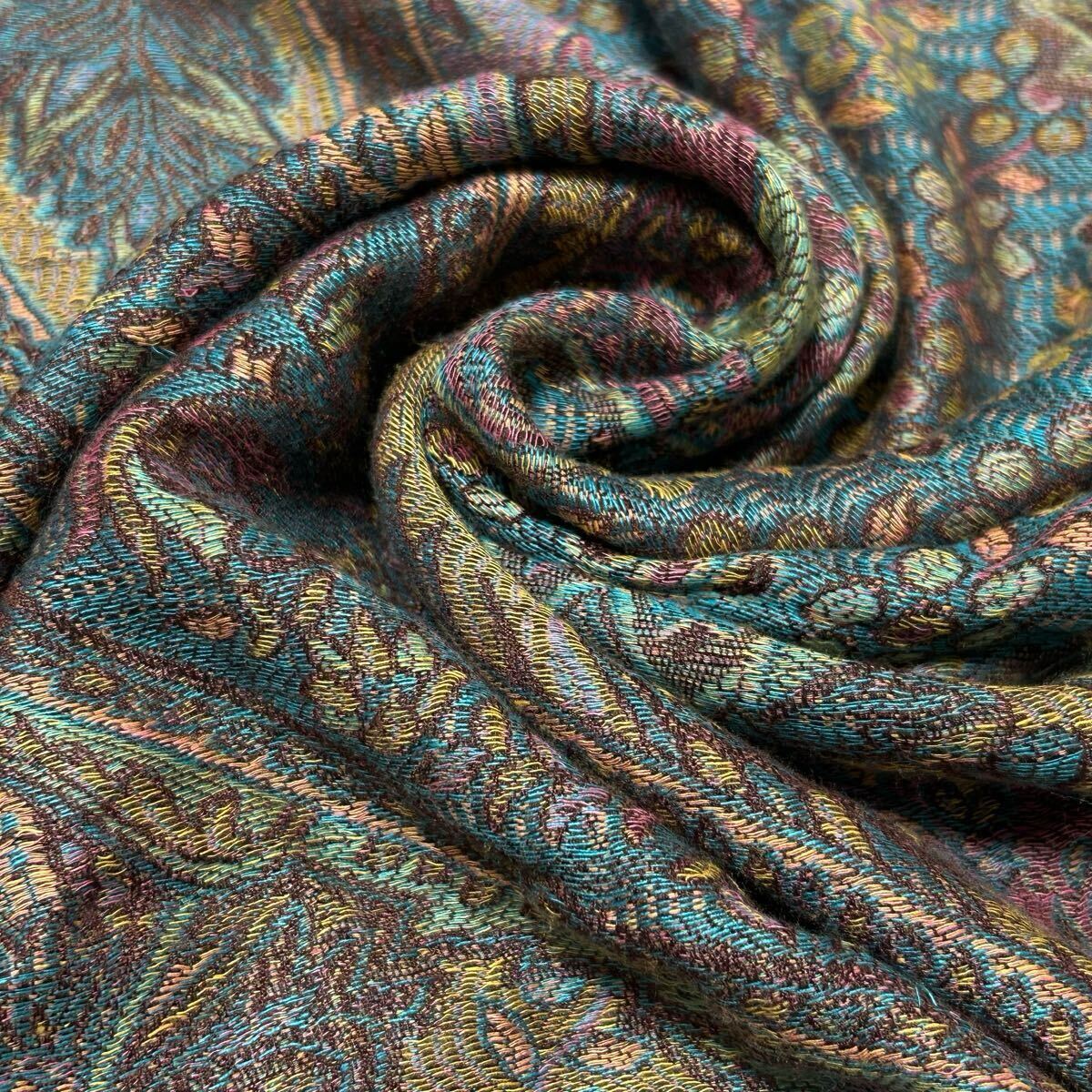 落ち着いたカラーですが、ゴージャス感もある総柄のデザインがおしゃれなストールです