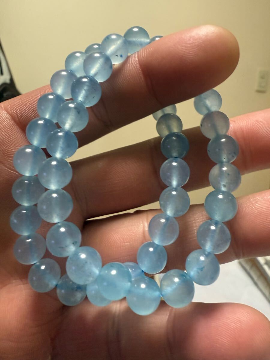 アクアマリンにしては内包物が見えてる方なのでモスアクアマリンよりの物になります。