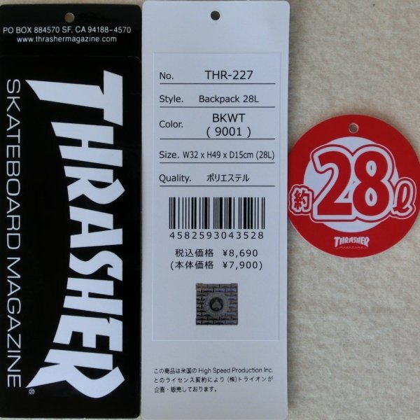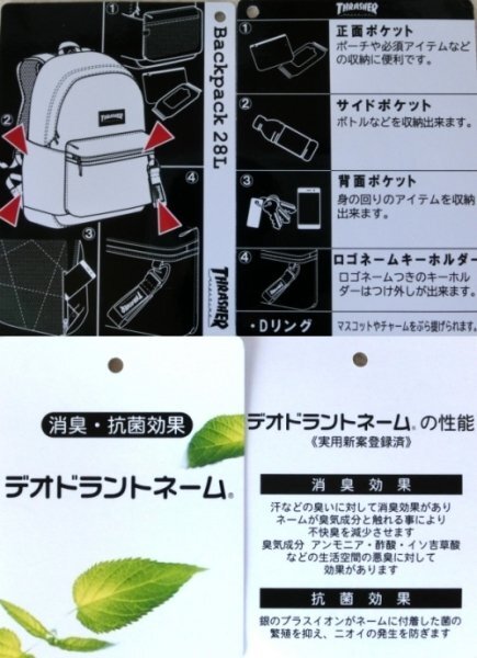 THRASHER スラッシャー・マガジン から生まれた、ハードかつ、クールな スケーターブランド ![]() ■【ブランド】 ・ THRASHER(スラッシャー) ■【品番】THR-227 ■希望小売価格 8,690円(税込) ■タグ記載サイズ・容量 ・W32×H49×D15cm ・28L ■色:BK/WT ブラック/ホワイト ■JANコード :4582593043528 ■素材品質 ポリエステル ・水をはじきやすい撥水生地 ■センターに、THRASHE ロゴワッペン (収納①-④) ①マチ付きフロントファスナーポケット ・内にメッシュポケット ・外にネームキーホルダー (カラビナ付き、マジックテープ開閉) ②メイン収納 ・タブレットやノートPC等収納できる、 ウレタンパッドポケット装備 (マジックテープ留め) ③サイドオープンポケット、両側 (500mmペットボトルなど収納) ④背面ファスナーポケット (端まで奥行きいっぱい) ■メイン収納は、ダブルファスナー開閉 ■ショルダベルト、長さ調節可 ・裏メッシュ ■Dカン付き ■上部にフックベルト ■背面は通気性の良い、メッシュ+ウレタン。 ■デオドラントネーム(消臭・抗菌効果) ※撮影用スマホはブルー 5インチ ※撮影用タブレットサイズ:26×18×2cm(白) キーボードケース付き ASUS K010(10インチ) ※撮影用小物は付属しません。 ![]() 【mobus モーブスはこちら】 ![]() 【OUTDOORボディバッグはこちら】 タップして検索して下さい。 ![]() ※値引き・セットの組替・早期終了の要請は、固くお断りいたします。 | |