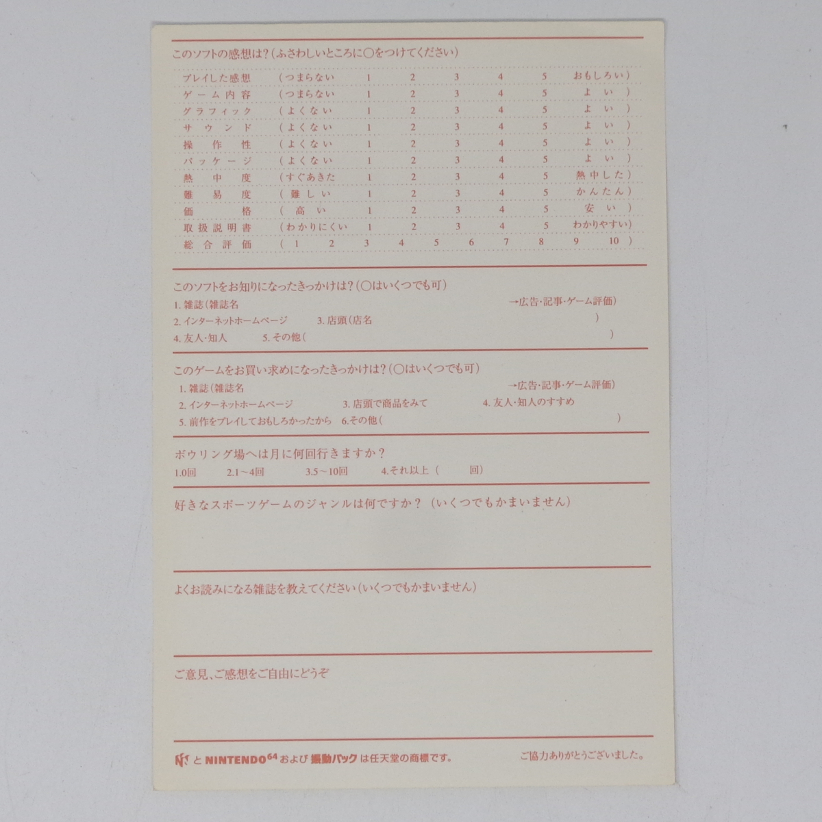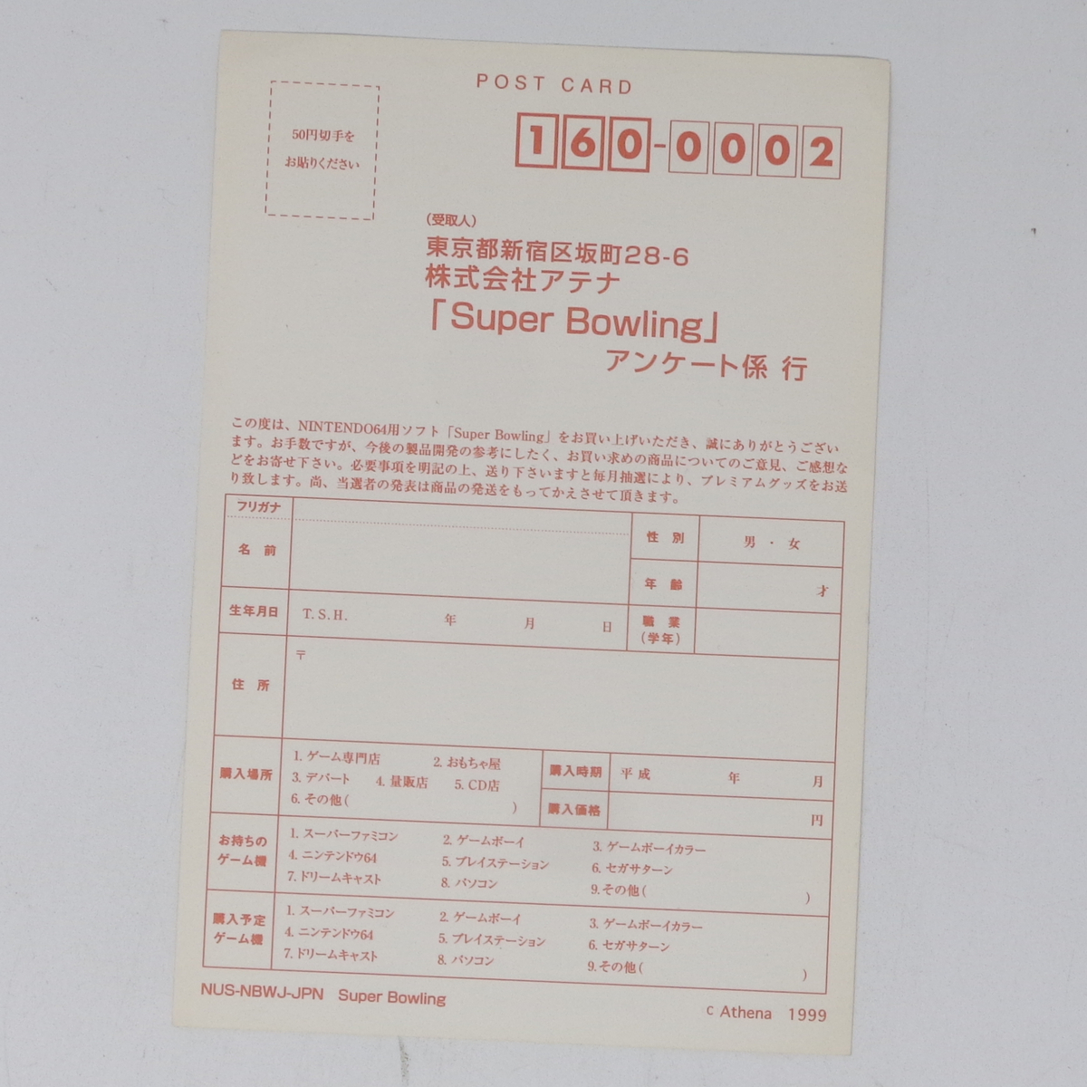 【葉書のみ】スーパーボウリング のアンケート葉書のみ /Super Bowling/Nintendo64/ゲーム[Free Shipping]