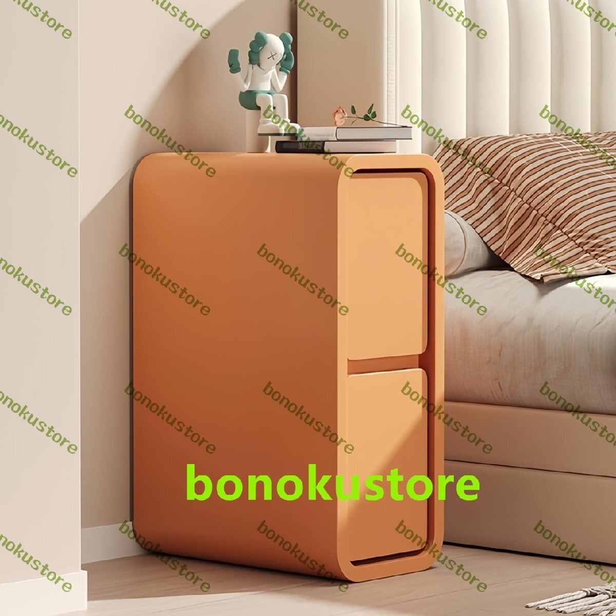 サイドテーブル 天然木 無垢材 PU皮革 幅20/25/30/35センチ ベッドサイドテーブル 小型 小規模住宅向けの設計 完成品 組立不要 引き出し付き 小物収納 (オレンジ 幅25cm*奥行40cm*高50cm)
