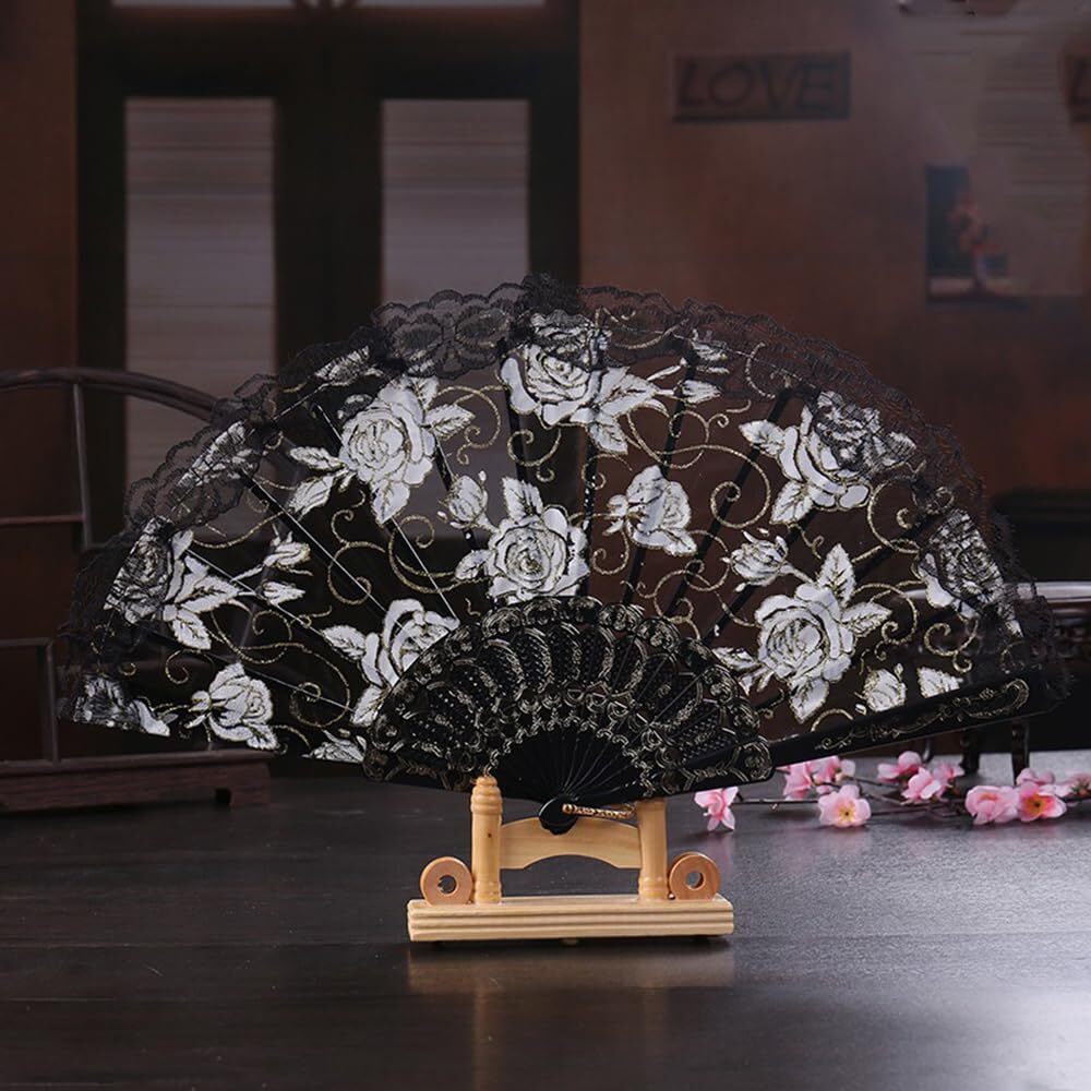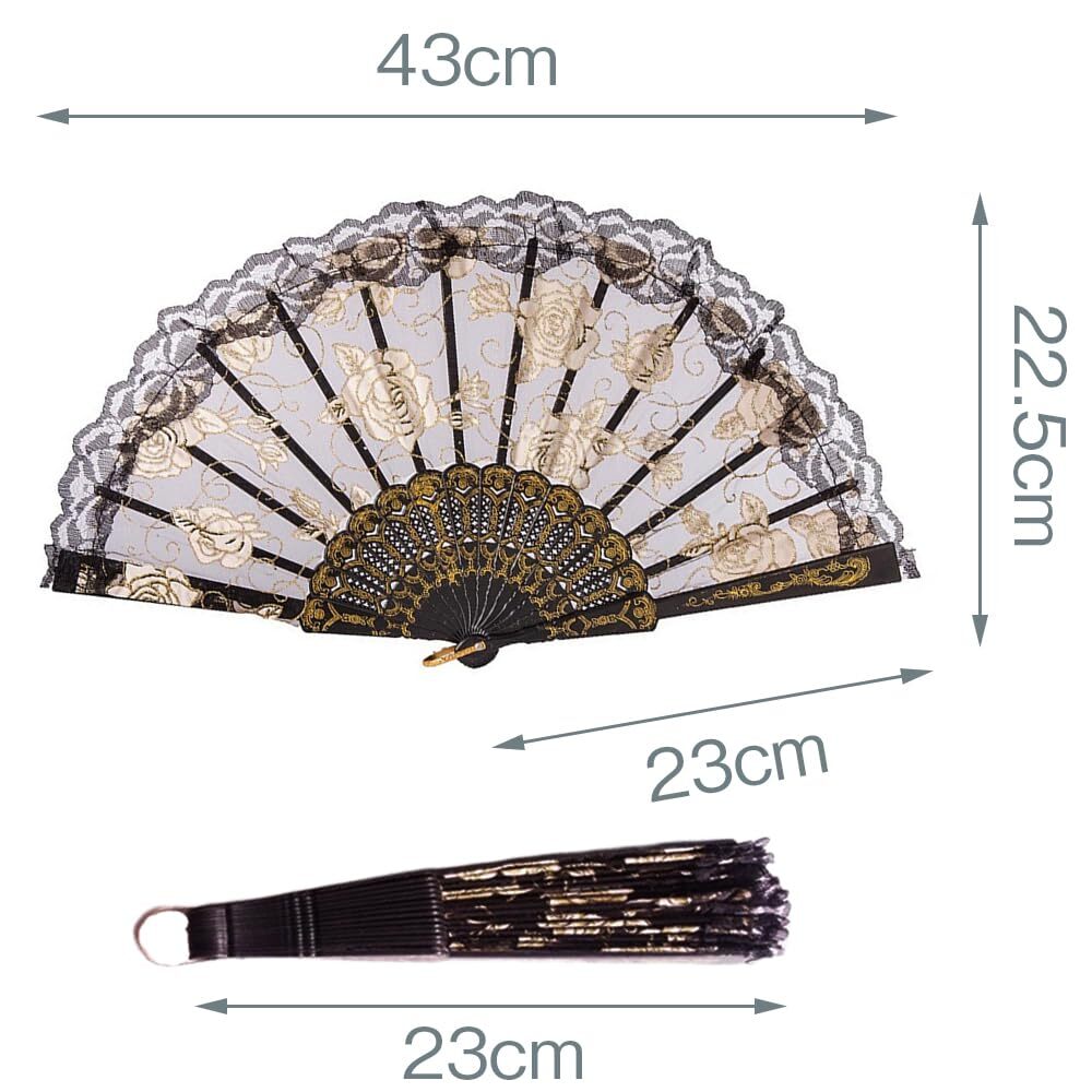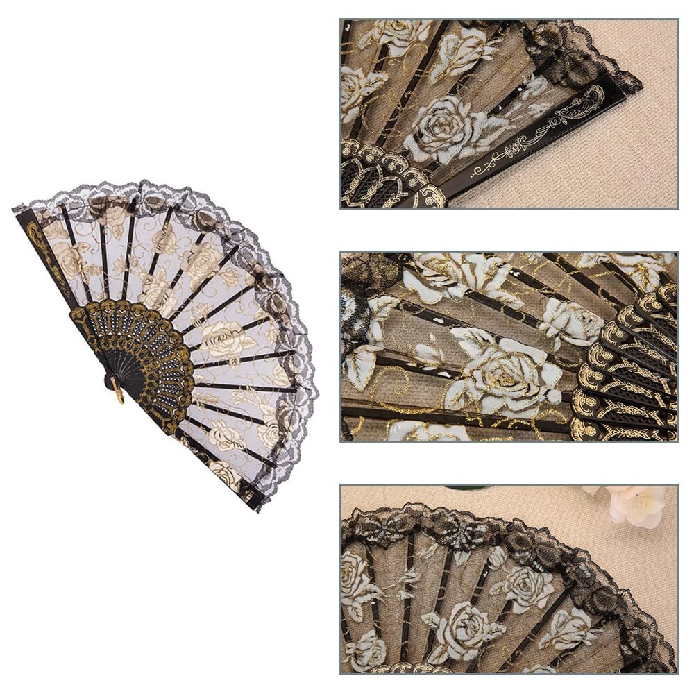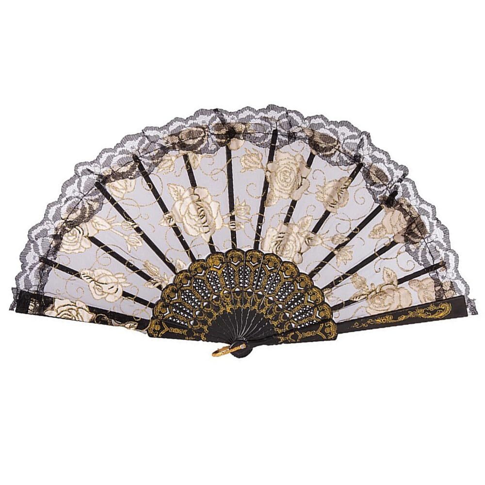 LOYELEY レース扇子 フラワーファン 薔薇 バラ柄 折りたたみ式 ダンス 踊り スペイン ドンキホーテやスペインの踊り バレエ バレエ用品 練習用 ダンスパフォーマンス用