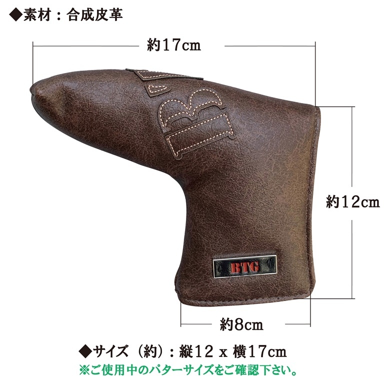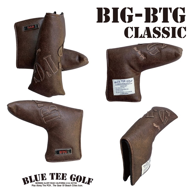 ●2オークション♪【PTB-BR】ブルーティーゴルフ【BIG BTG - Classic:ブラウン】パター用(ブレード型)カバーBLUE TEE GOLF 送料無料
