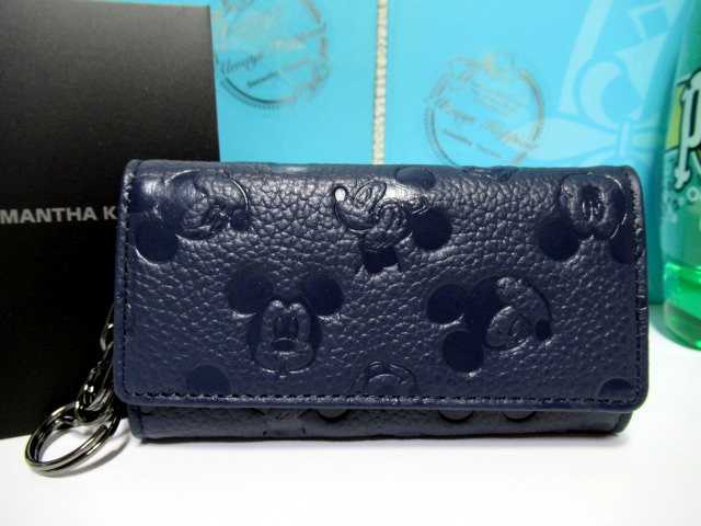 送料無料 キングズ バイ サマンサタバサ 限定 ミッキー 牛革 型押 4連 キーケース 紺 新品 証明書 包装付 ディズニー サマンサキングズ