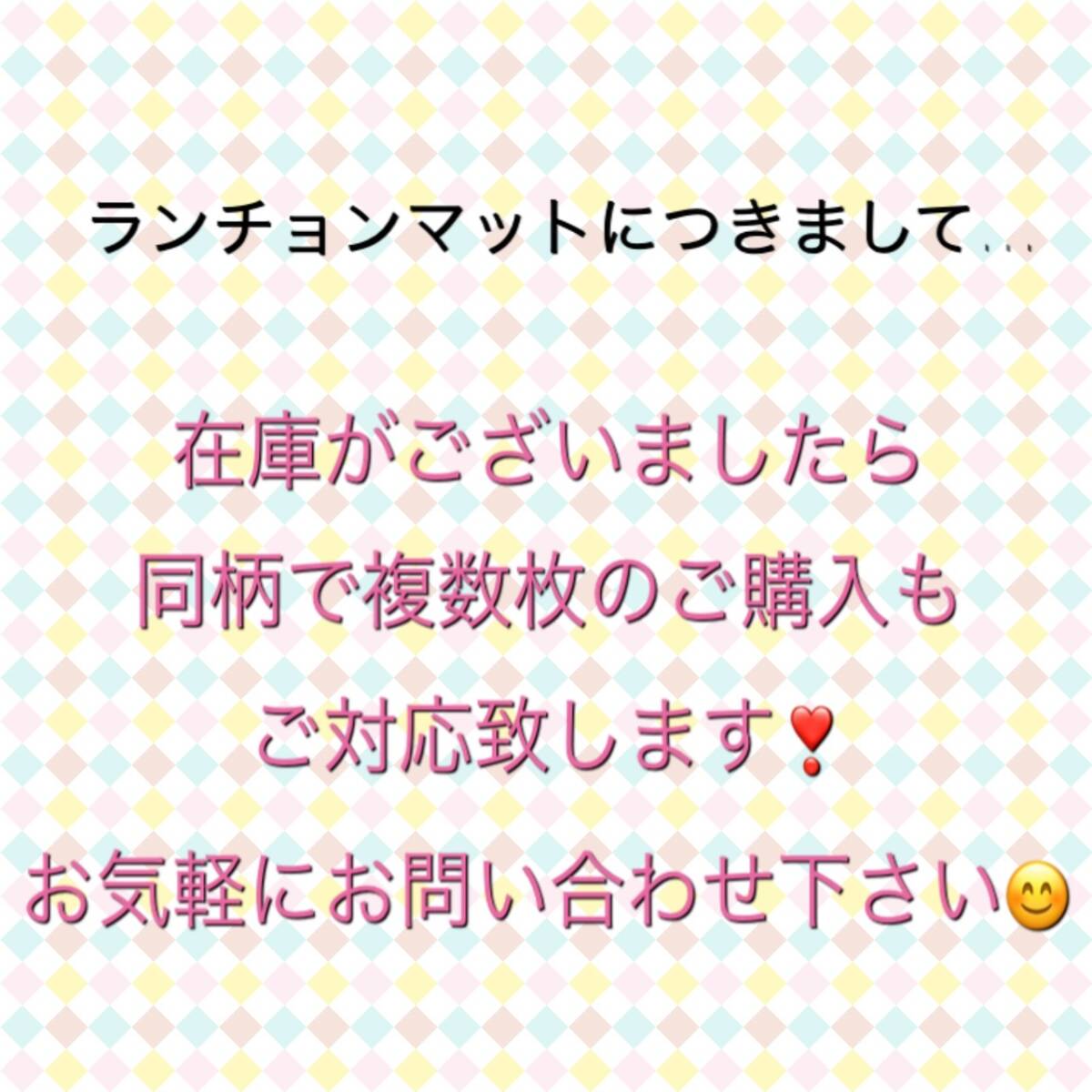 | ご覧いただきまして、ありがとうございます。 <商品詳細> サイズ 約25×35㎝ 裏地 あり ※ 素人のハンドメイドなので、多少のゆがみ・ずれ・縫い直し等がある場合がございます。ご理解いただける方のみ、ご検討お願い致します。 ※配送前はアイロンで生地整えますが、梱包後、多少の折りシワがつくかと思われます。ご了承下さい。 ★まとめてお得 ランチョンマットを複数お買い上げごとに50円お値引きさせていただきます! 例) 2枚ご購入:50円お値引き 3枚ご購入:100円お値引き 4枚ご購入:150円お値引き : : ご希望でしたらコメントよろしくお願い致します。 | |||