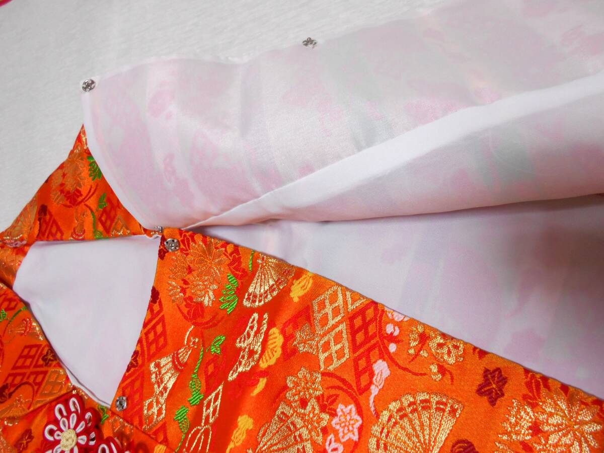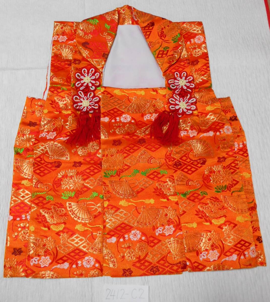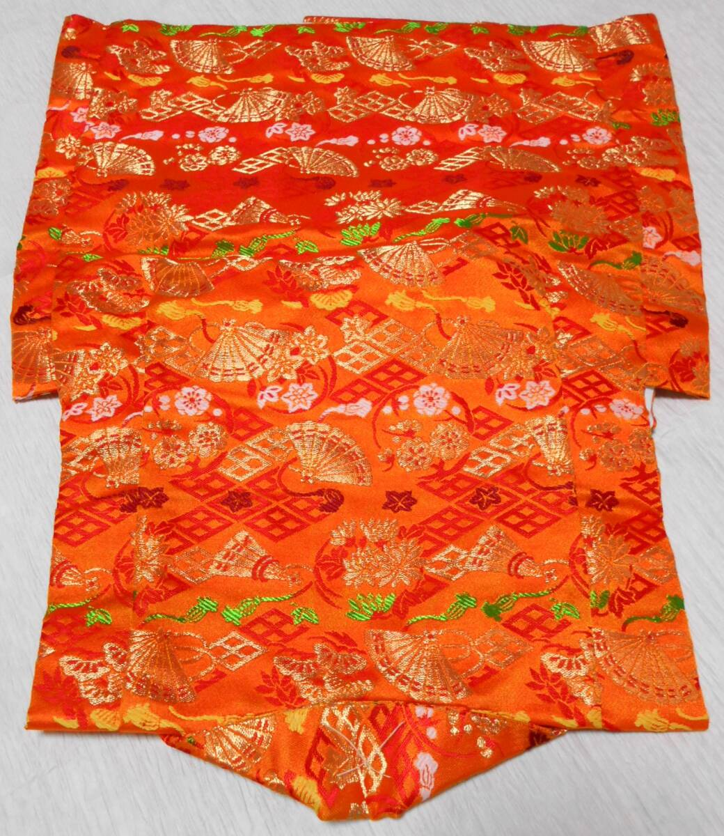 子供用 オレンジ色に金糸使いで華やかな模様の被布です。