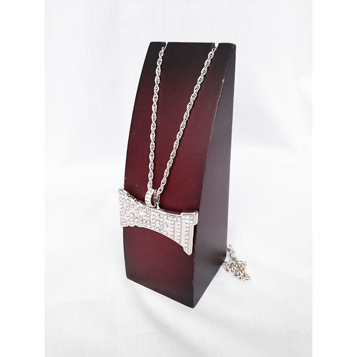 ジルコニアがふんだんに埋め込まれたESSKEETITロゴネックレス。