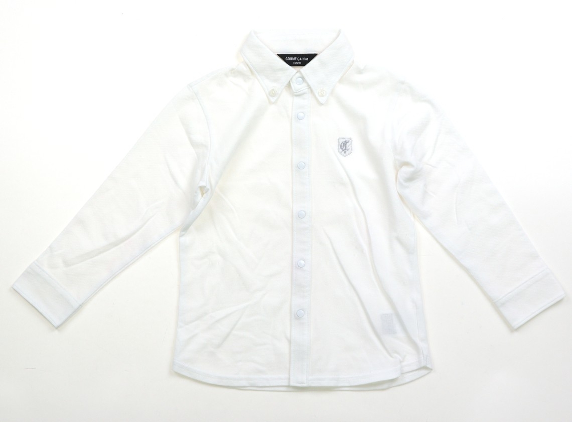 ポロシャツ生地、スナップボタン留め。両袖に黄色っぽいシミ汚れが見受けられます。普段使いにいかがでしょうか。