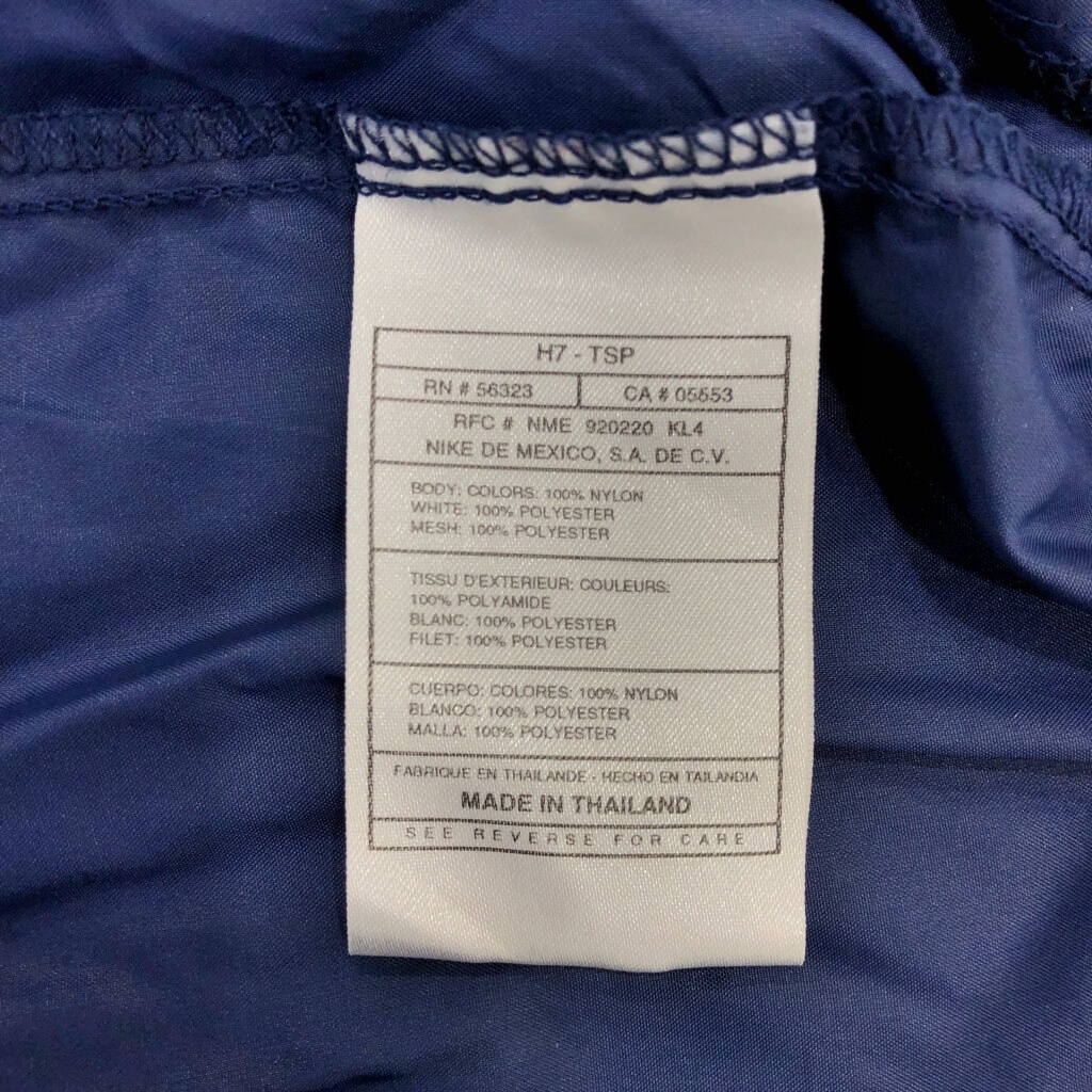[商品管理番号] T4849 [ブランド] NIKE/ナイキ [サイズ] L [実寸サイズ] 着丈:約68cm 身幅:約66cm 裄丈:約89cm 袖下丈:約54cm [主な素材] 表地 : ナイロン 裏地 : 13897 [色] ネイビー [仕様] 90年代 裏地メッシュ スポーツ [状態] 汚れ:襟、袖、胸、背中 特記事項:変色 | |||