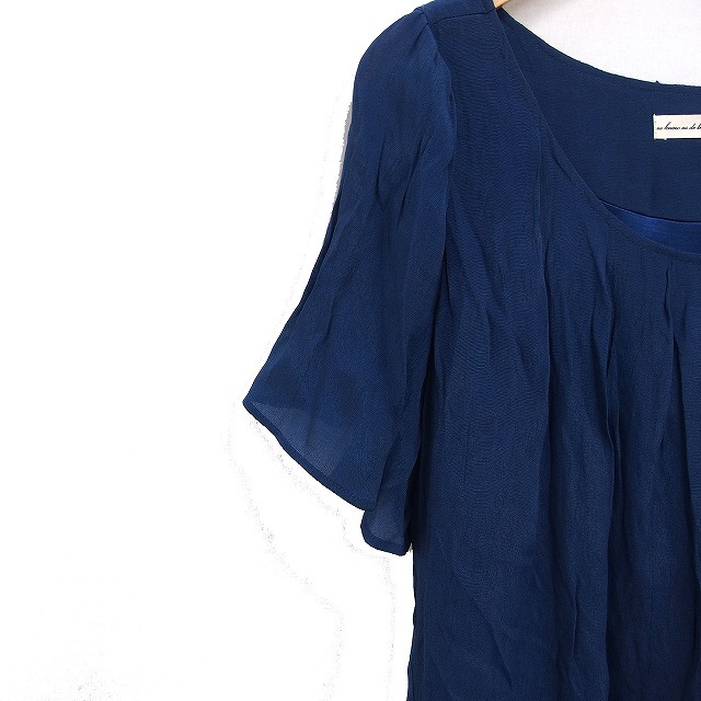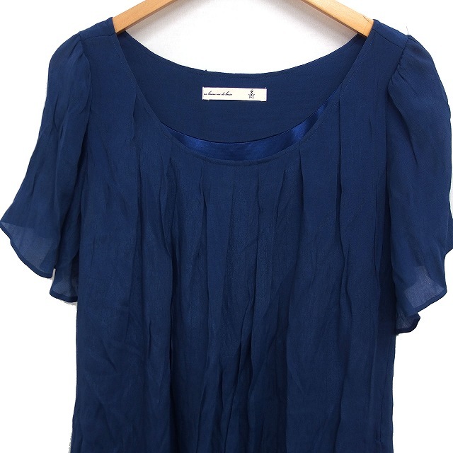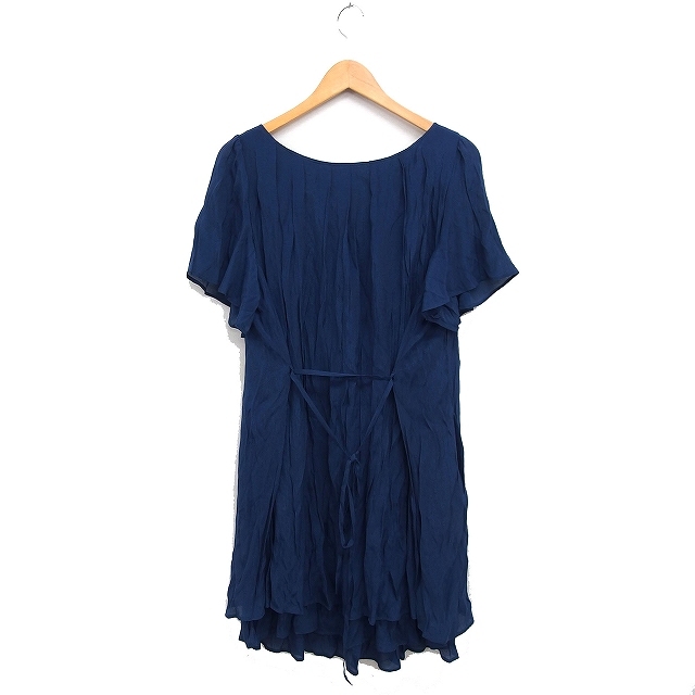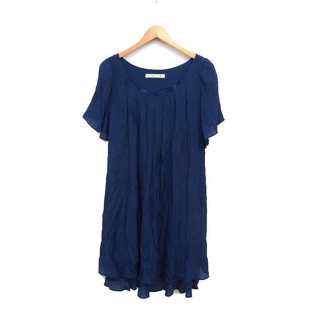 アズノウアズ ドゥバズ as know as de base ギャザー ワンピース 半袖 ロング丈 リボン 無地 ※ ネイビー 紺 /FT28 レディース