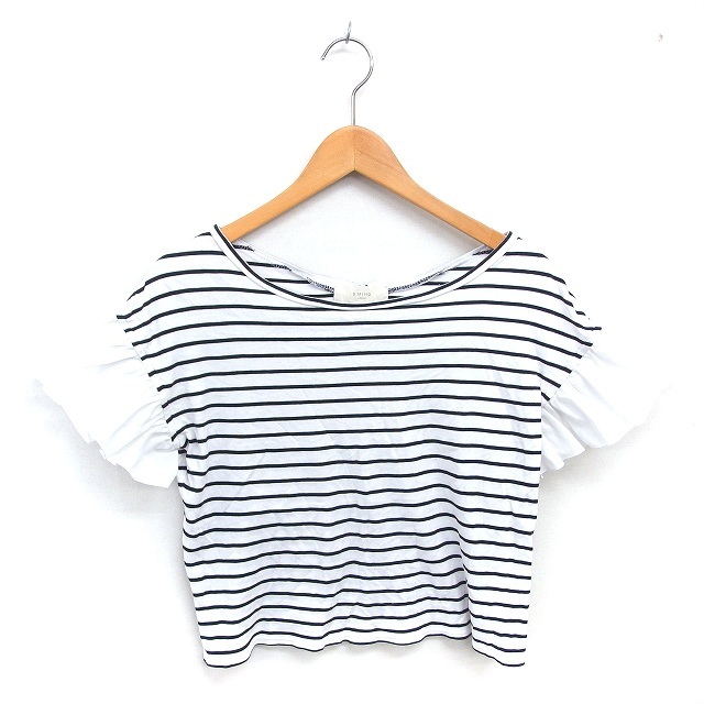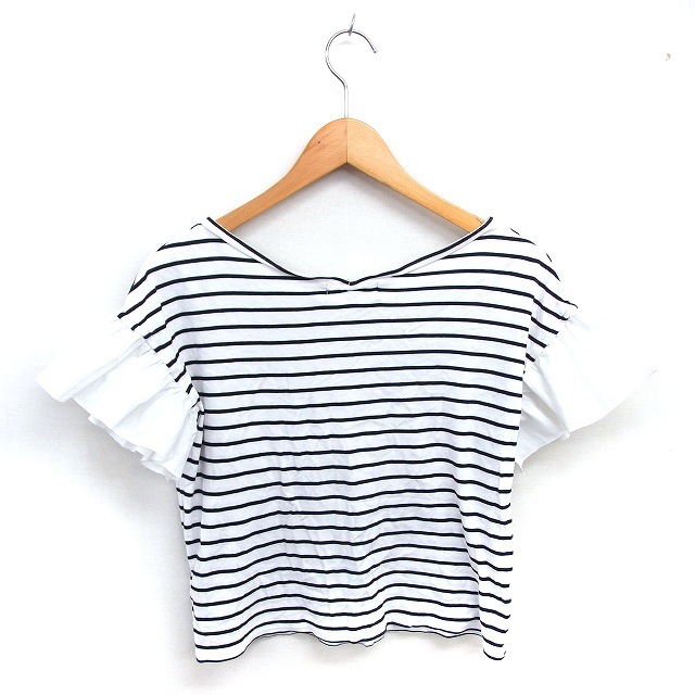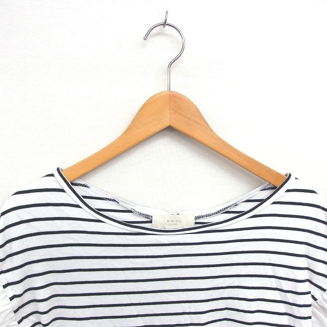 ビーミングバイビームス カットソー Tシャツ ボーダー 切り替え ボートネック 袖フレア 半袖 ONE ホワイト 白 /TT レディース