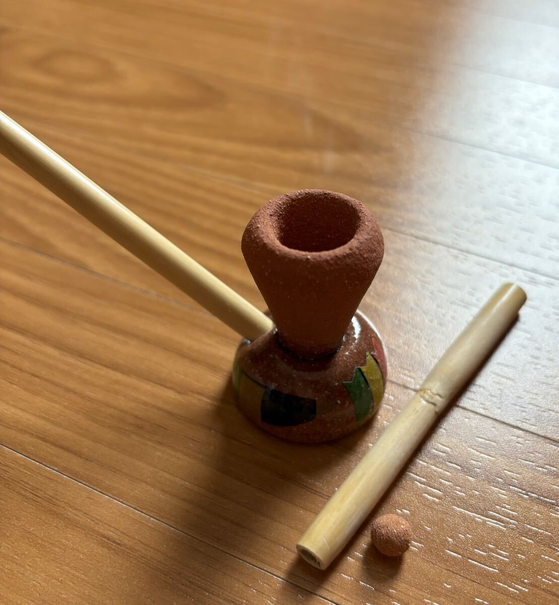 コッチの上部直径約2cm、全体の高さ約5cm。予備のバンブーストローとマル玉付きの特別セットです。