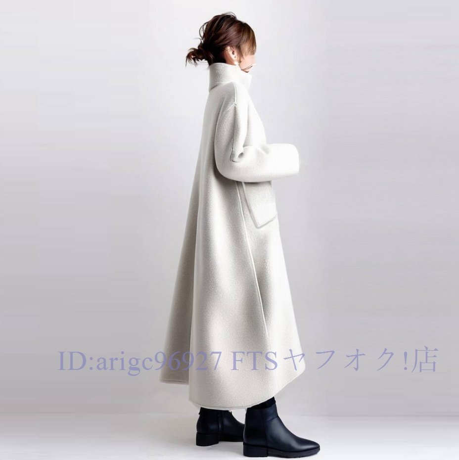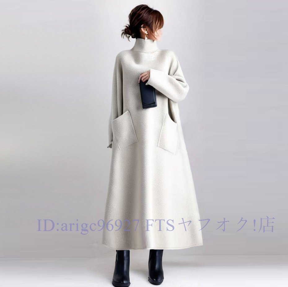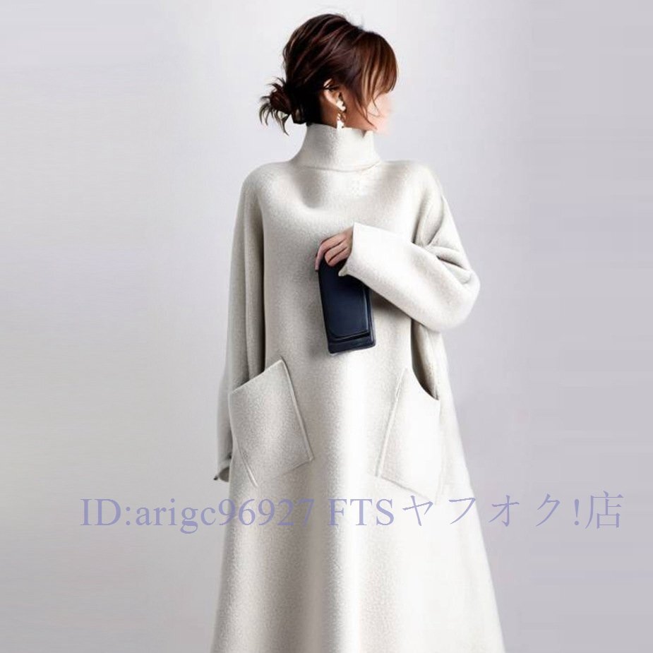 B3243☆新品秋冬~ラシャワンピース 上品 厚手 ラシャ ハイネック ロングワンピース 長袖 Aラインワンピース オシャレ ミモレ丈 ~