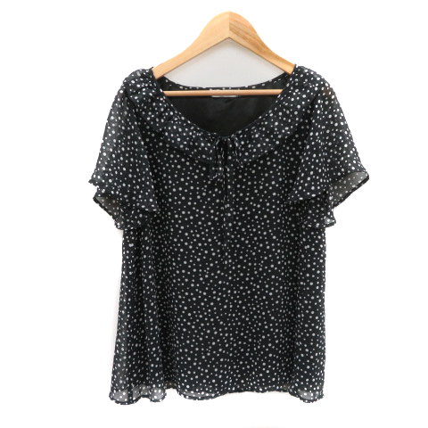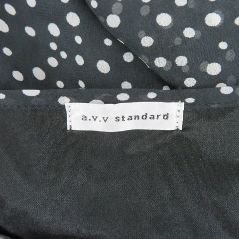 アー・ヴェ・ヴェスタンダード ミッシェルクラン ブラウス カットソー 半袖 ランダムドット柄 38 M 黒 ブラック レディース