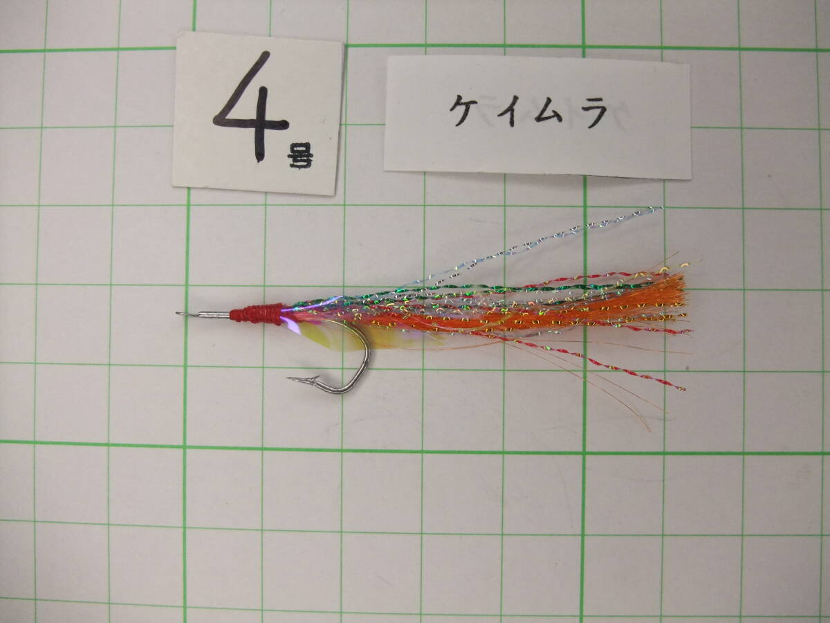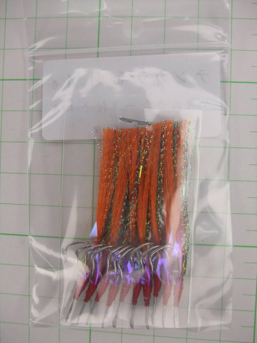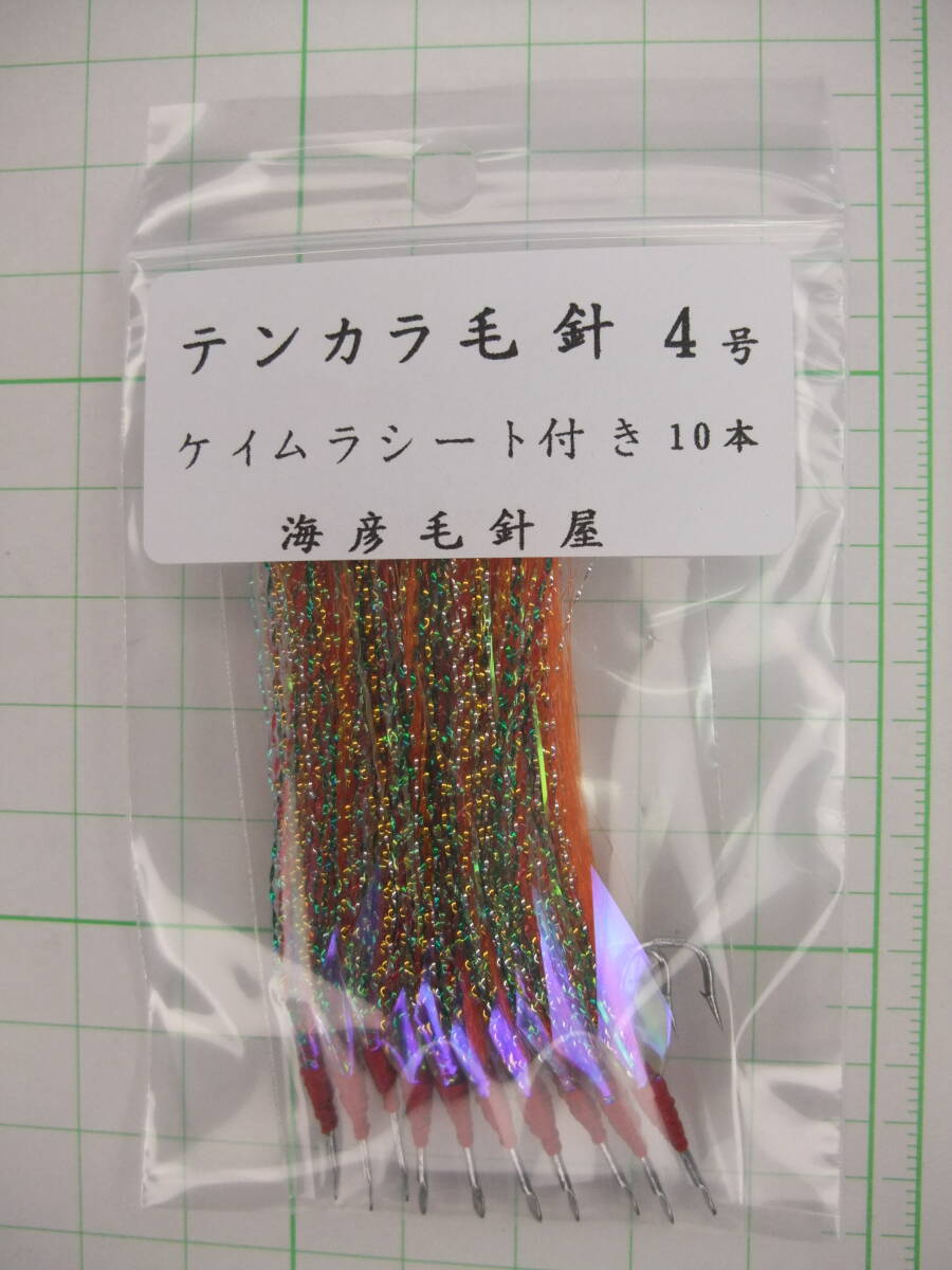 4OK テンカラ毛針4号 イソ縄毛針 オキメバル  オレンジフラッシャー ケイムラシート付き 10本セット