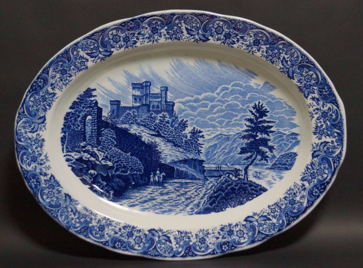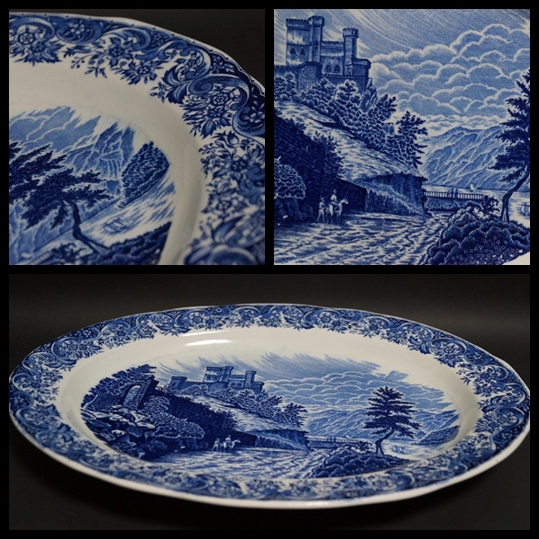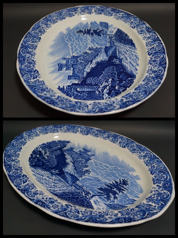 昭和レトロ 印判 『ヨーロッパ城人物風景図』 楕円形大型絵皿 飾り皿 幅47cm★時代物★ サイズ(約): 最大幅47cm、奥行35.7㎝、高さ4.3cm、総重さ1.6㎏ |
