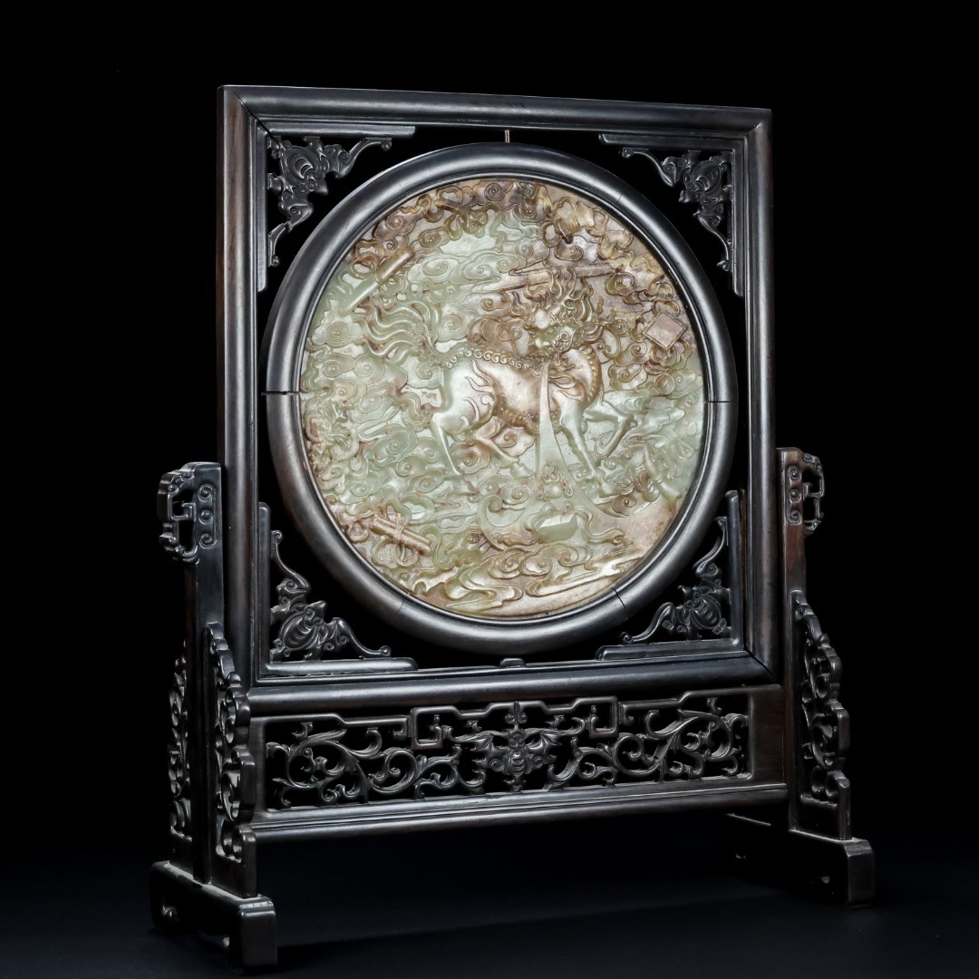 唐物 明清時期 和田玉 插屏 中国美術品 時代物 D63