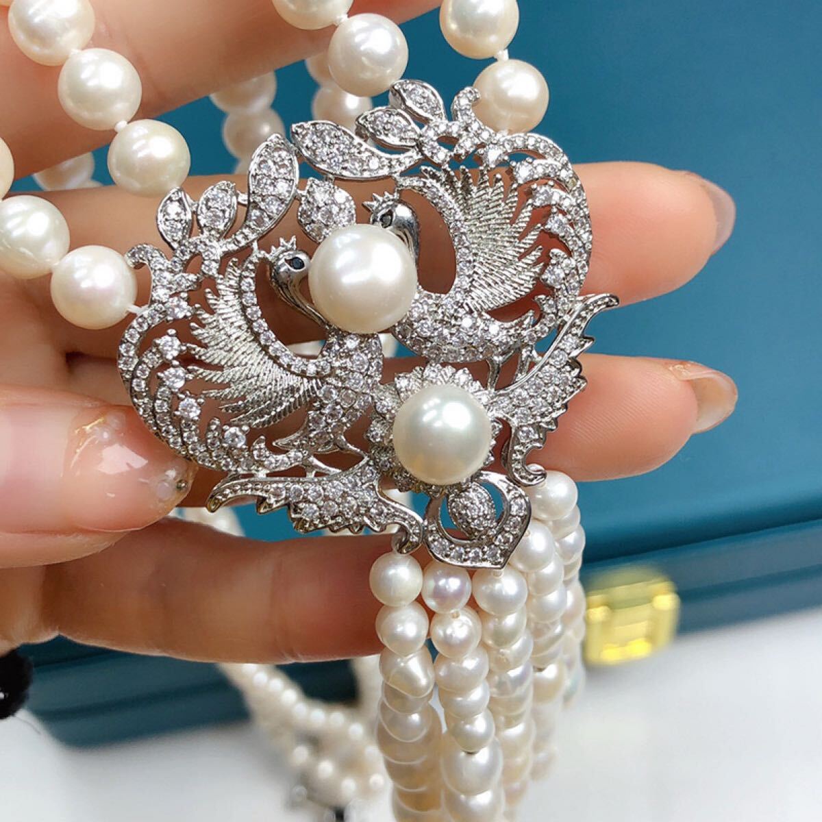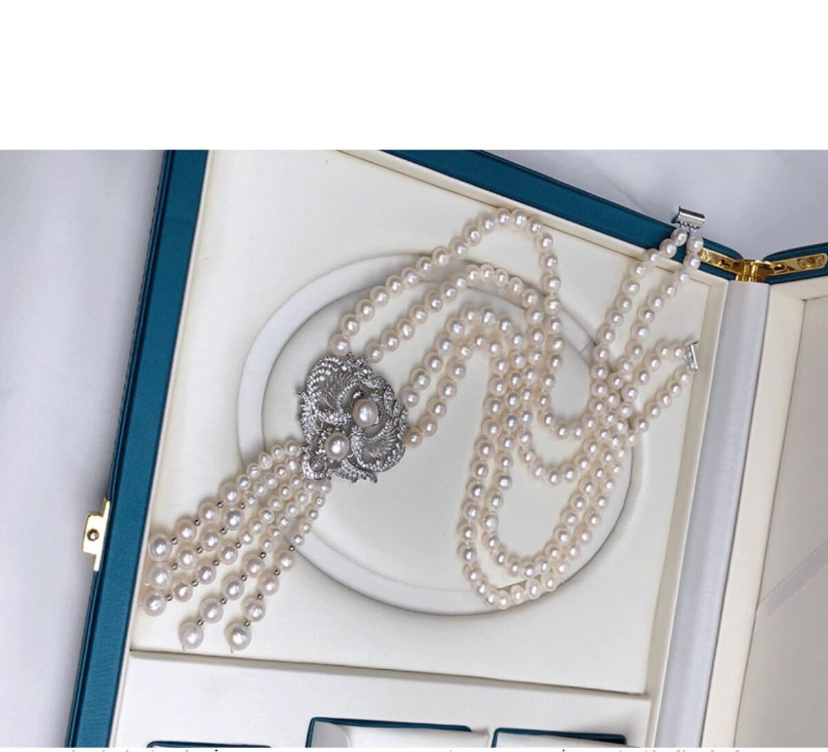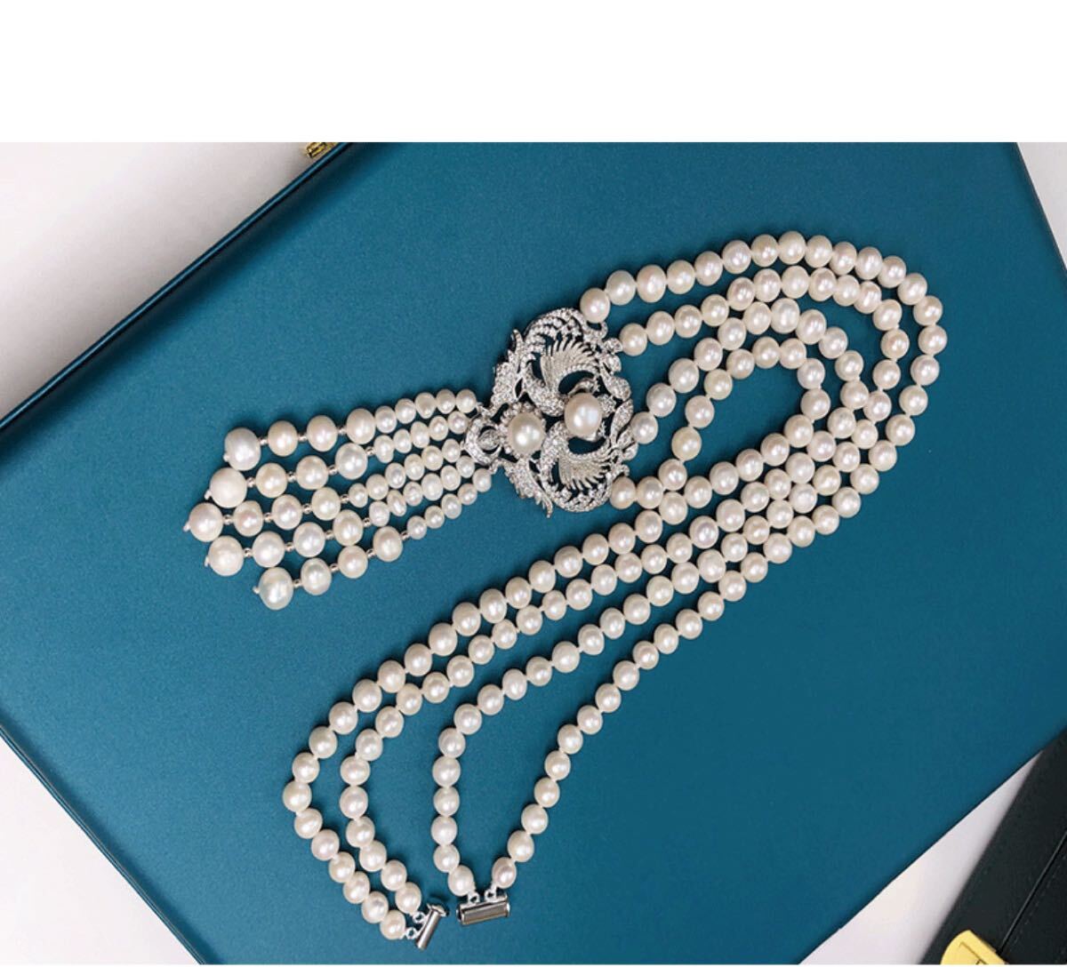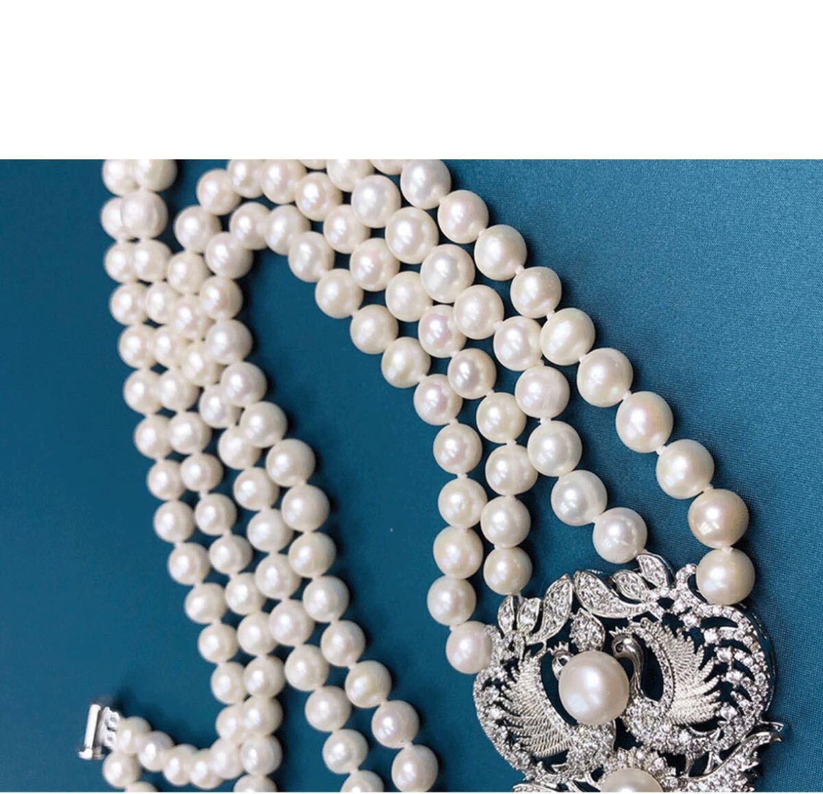 本真珠ネックレス 2連大玉淡水パールペンダント付き