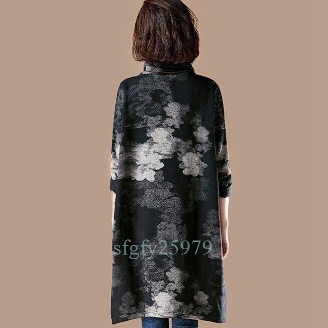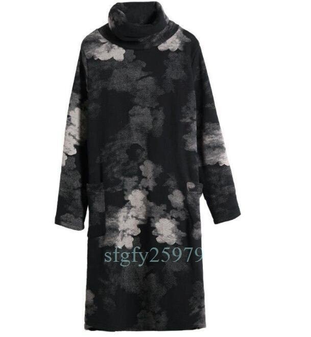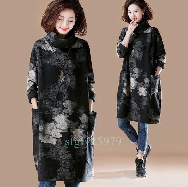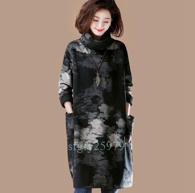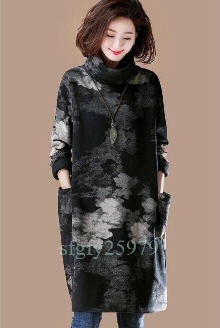 B774☆秋冬新品 秋冬レディースおしゃれ 通勤 膝丈 裏起毛厚手 長袖 トレーナーワンピース(M-4XL)