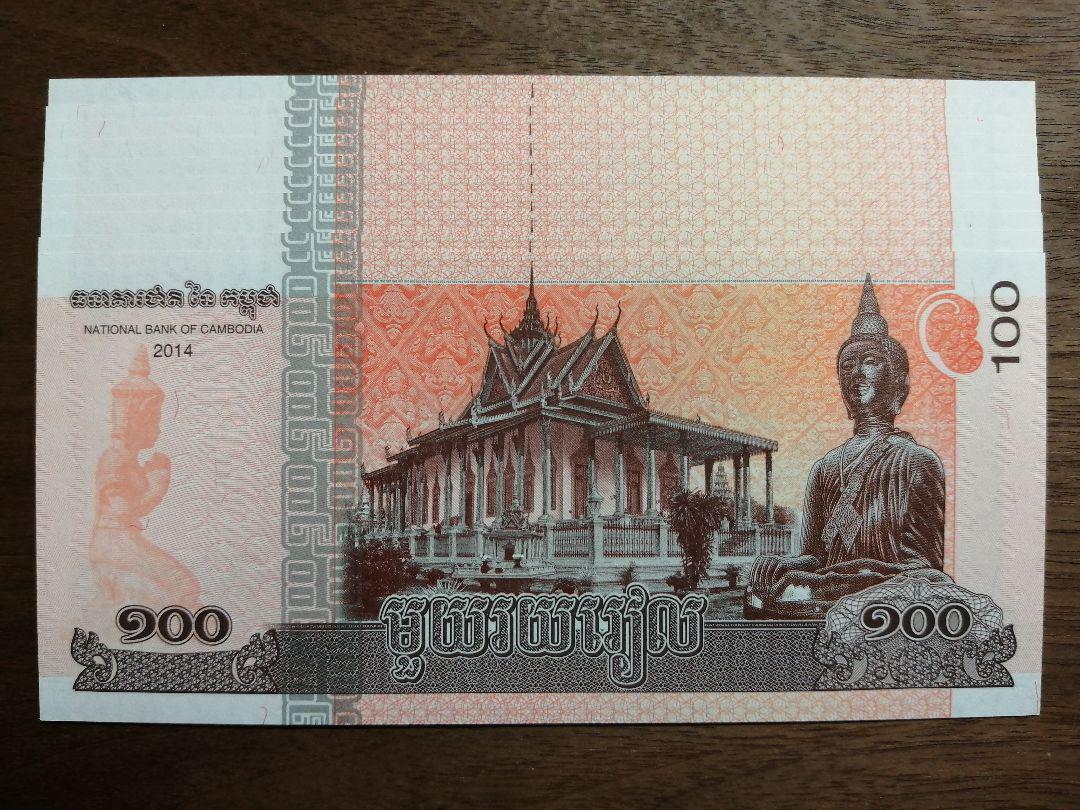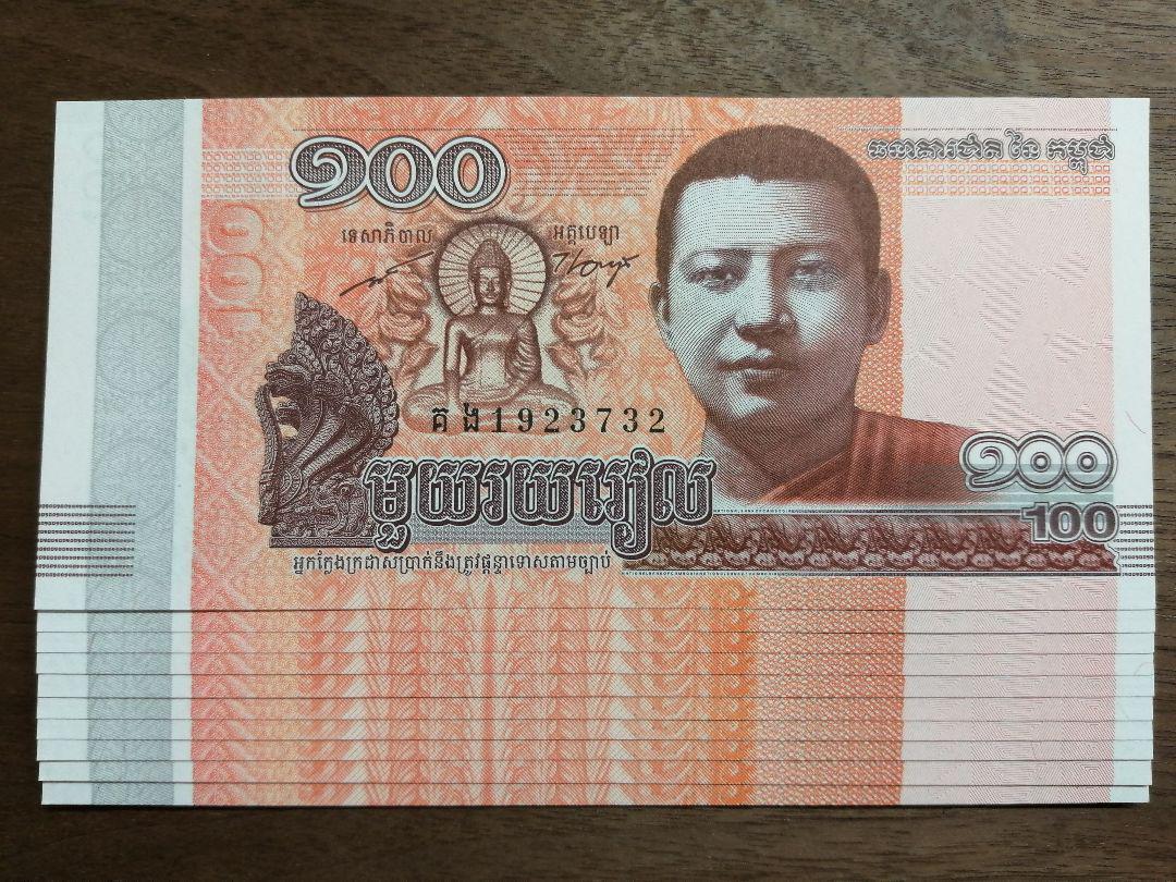帯封から崩した、カンボジアの100リエル 10枚連番です。