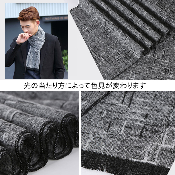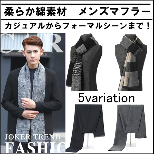 送料無料 マフラー(グレイ/柄) メンズ チェック柄 綿素材 通勤 通学 フォーマル から カジュアル まで