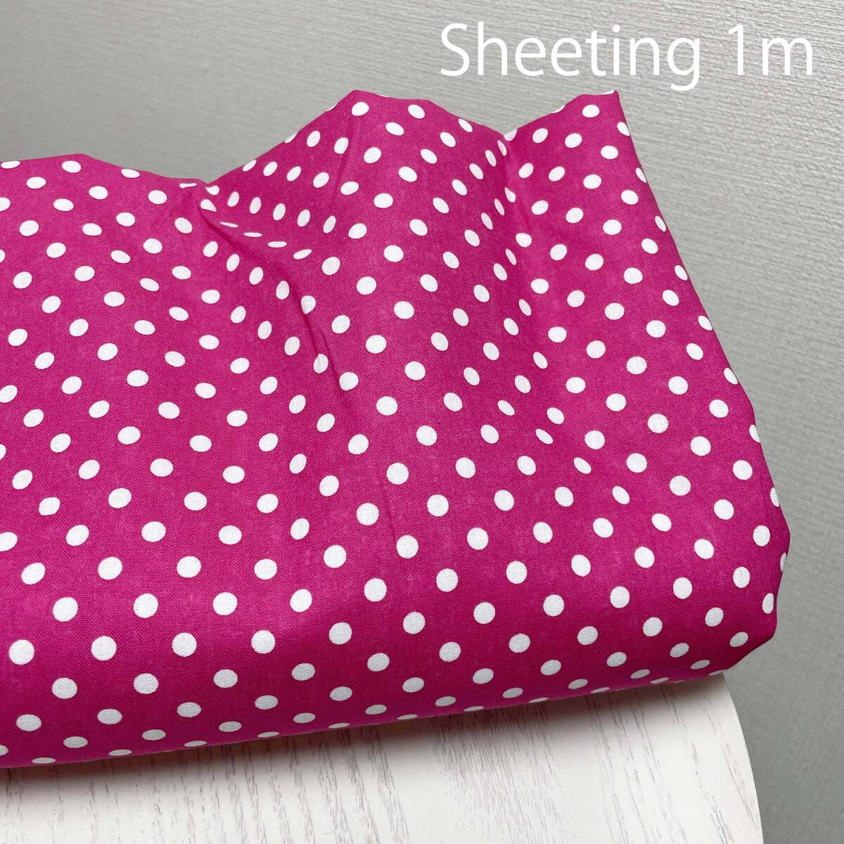 【特価】ドット柄1m弱シーチング生地はぎれ布★水玉女の子入園入学★濃い目のピンク