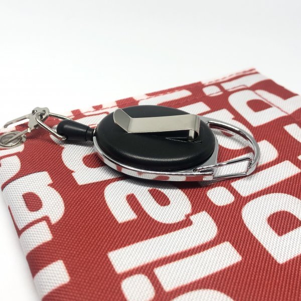ワイヤーリールによって最長74cmの長さまで伸びるカラビナ(フックとベルト掛けの2WAY)が付いており、キャディバッグ、ラウンドバッグ、スタンドクラブケースなどにつけてラウンドし、手元に引き寄せてさっと利用していただく事が可能です。