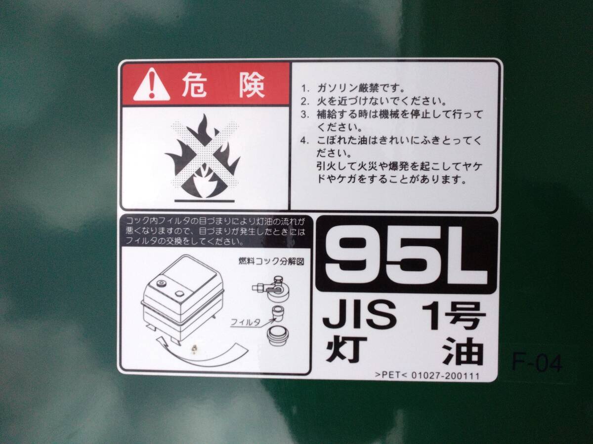 岩手 未使用品 静岡製機 灯油タンク 容量95L JIS1号 燃料 給油 店頭販売 農機具市場 矢巾店