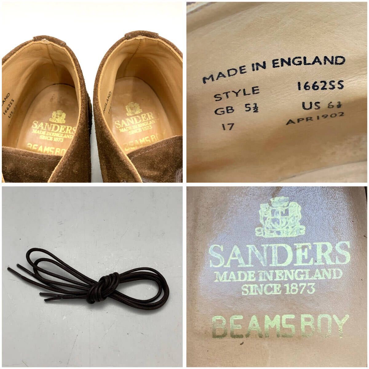 SANDERS [サンダース] ビームスボーイ マッドガード チャッカブーツ ショートブーツ スエード ダークブラウン 茶色 UK5.5 革靴 シューズ
