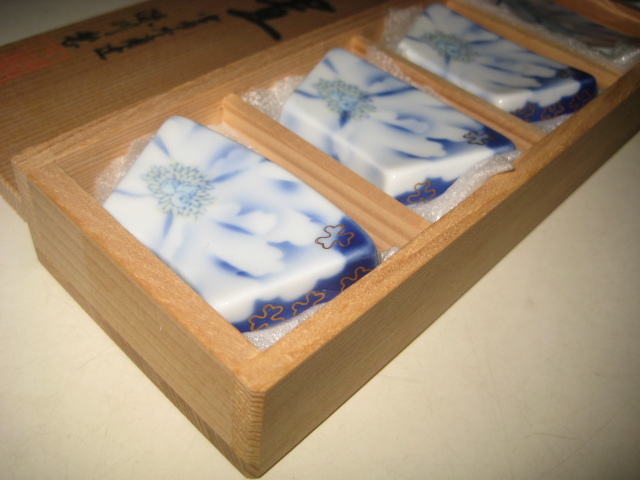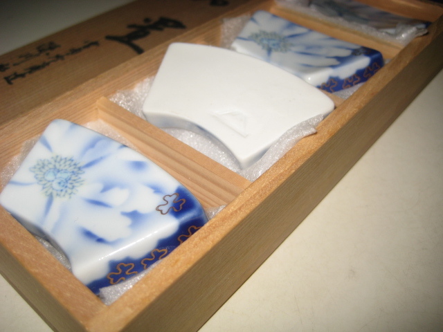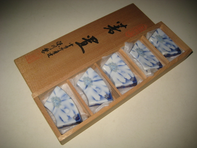深川製磁 牡丹金ミル 扇型 箸置き 5個セット 共箱