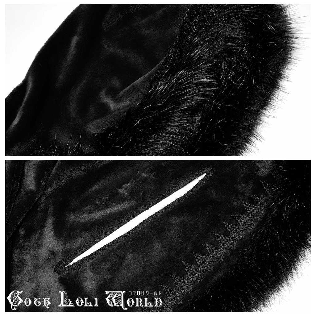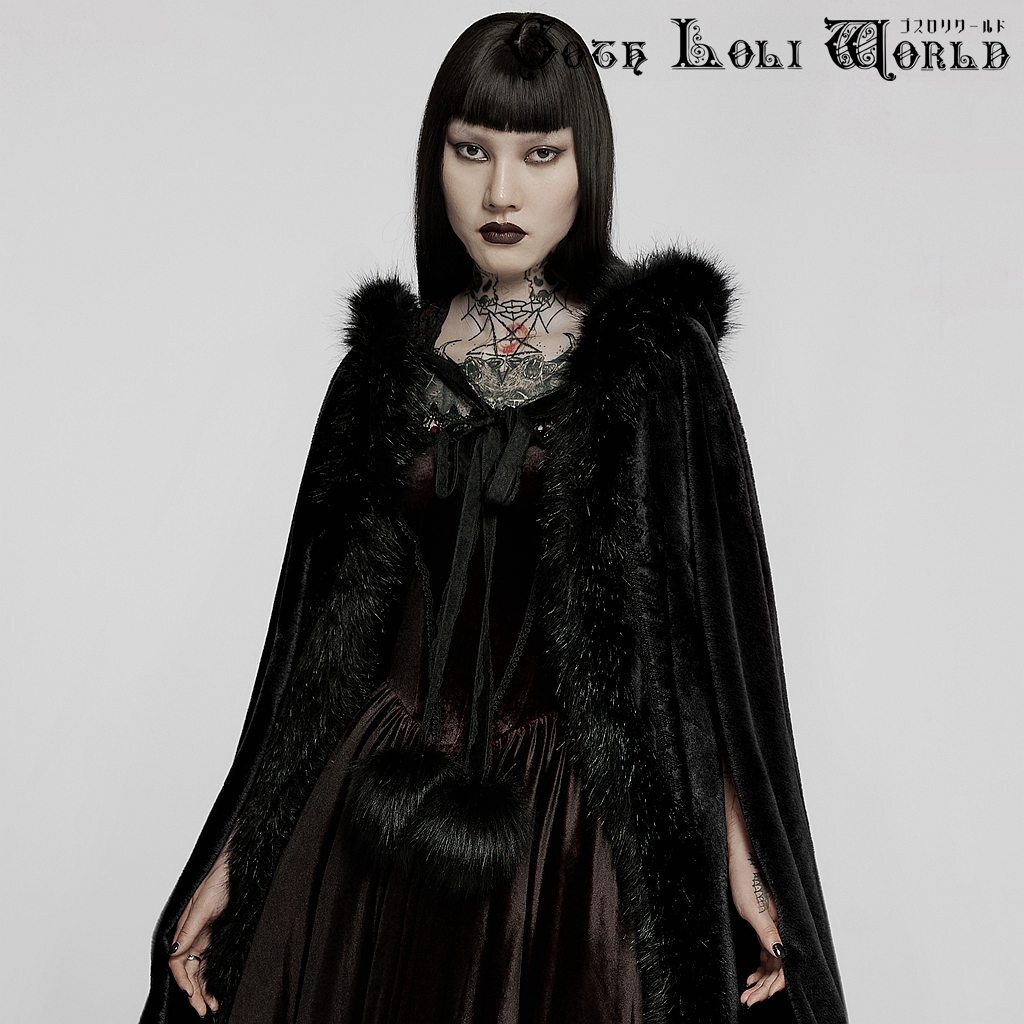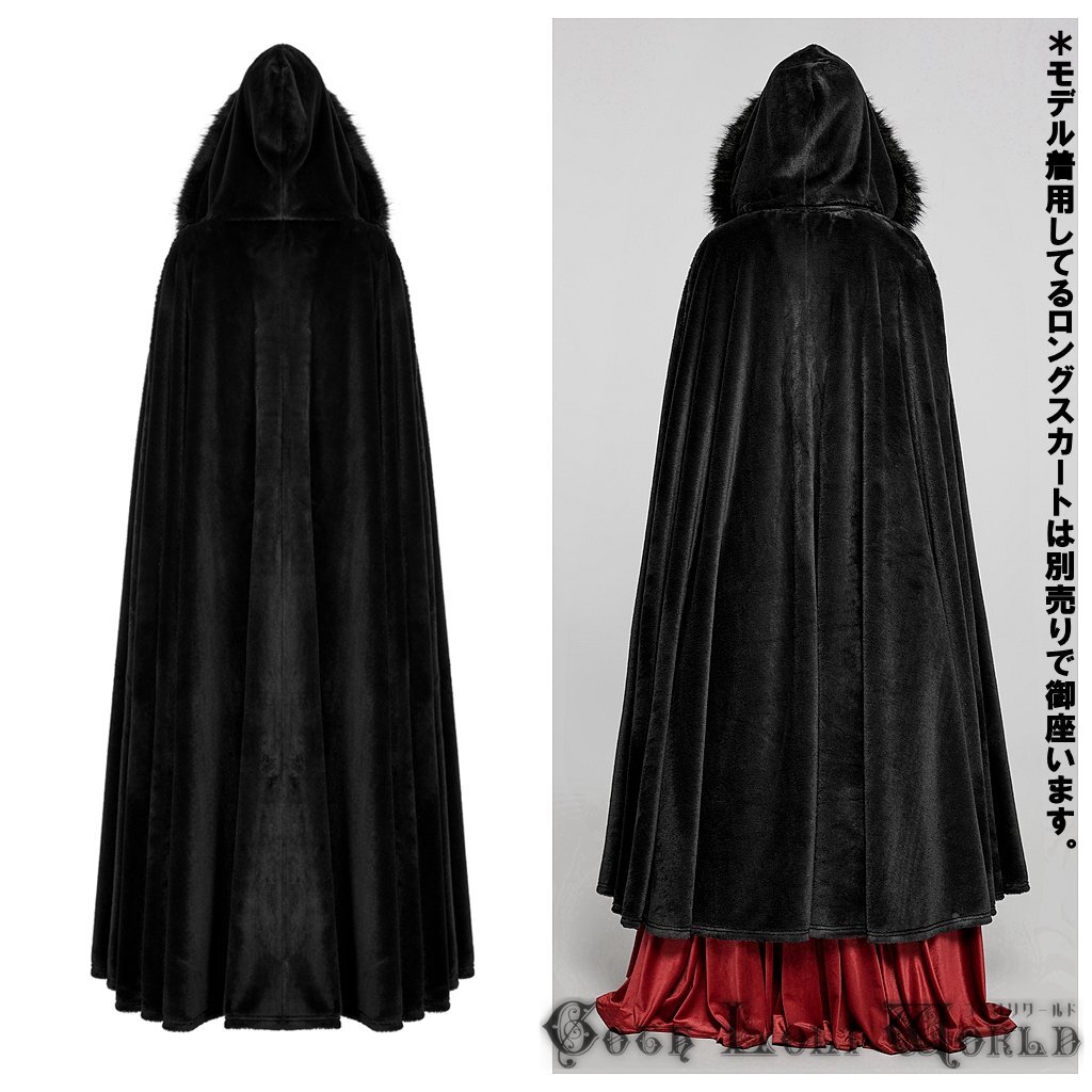 WY-1423BK-FREE ロングファーフード付 マント コート 黒色 ゴスロリワールド ゴシック パンク ロック ロリィタ ビジュアル系 V系