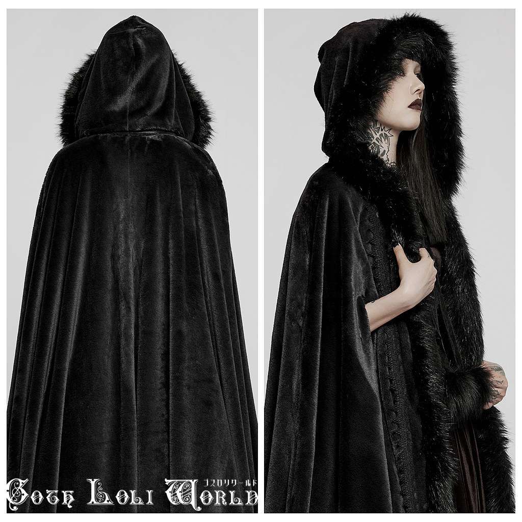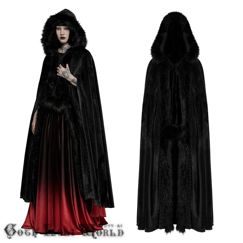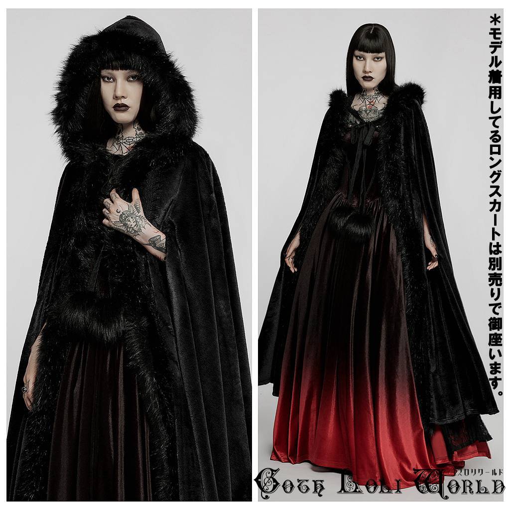 WY-1423BK-FREE ロングファーフード付 マント コート 黒色 ゴスロリワールド ゴシック パンク ロック ロリィタ ビジュアル系 V系