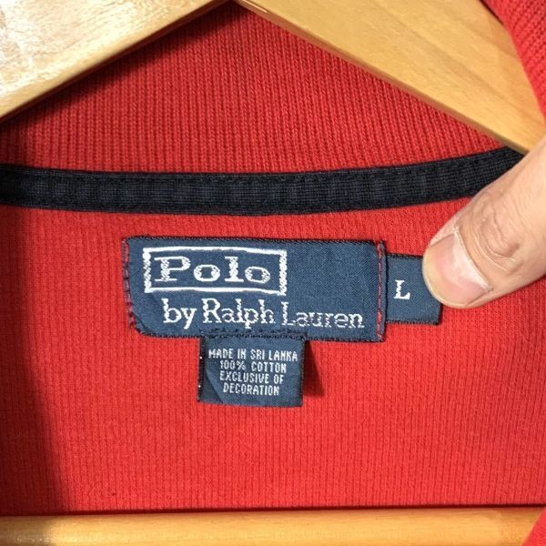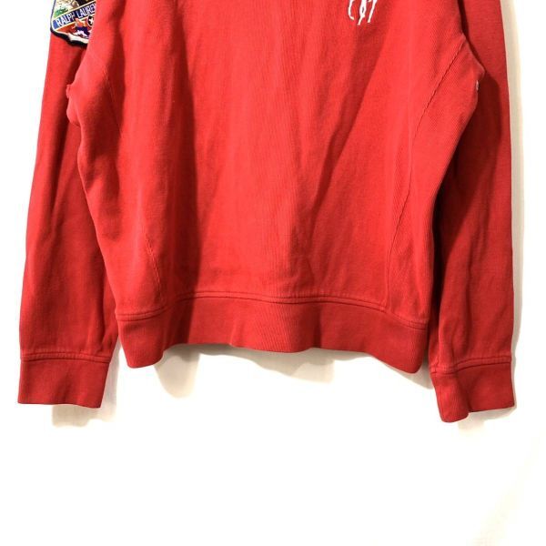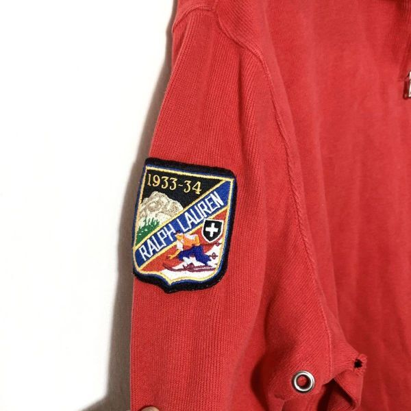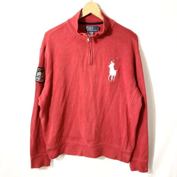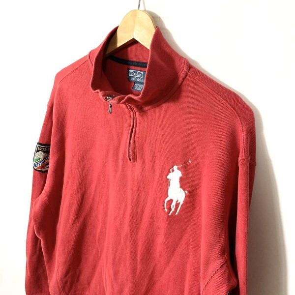 ■ Polo Ralph Lauren ポロ ラルフローレン ビッグポニー 刺繍ロゴ ワッペン付き ハーフジップ ニット セーター 古着 レッド サイズL ■