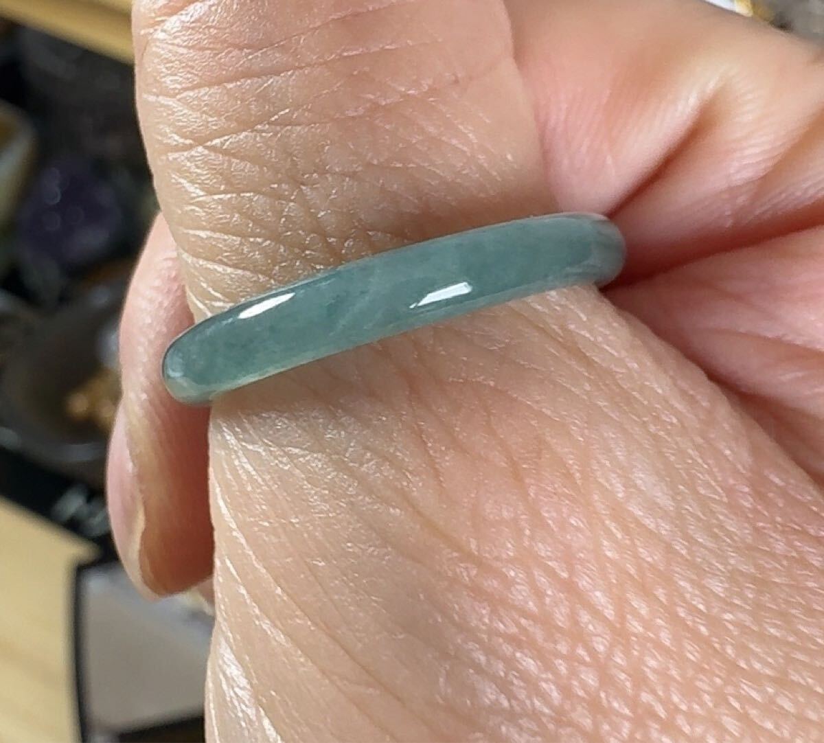 R2-0696天然本翡翠《本物保証》 藍水翡翠 指輪約22号 一点物 希少 縁起物 お守り 魔除け 昇進 成功 風水 金運 財運 幸運 幸福