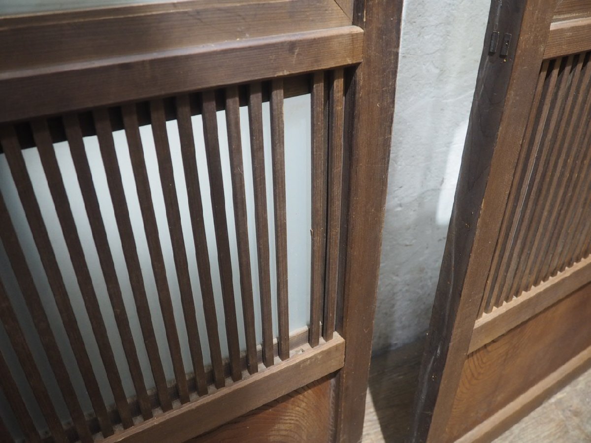 商品情報 | ■商品詳細■ レトロな古い木製ガラス戸、5枚セットです。 長年使い込まれた味わいのある品です。 ガラスは、ケンドン部分は曇りガラス、 中央はサンドブラスト加工の透明ガラスを使用しています。 一般のご家庭はもちろん、レトロな店舗什器にもお勧めです。 経年の傷や欠け、染みやヒビ、加工跡の小穴や桟に欠品、 戸車の欠品や塗装の剥がれ、ガラスに落としきれない汚れ等あります。 裏ガラスは3枚のみ完品、他2枚は全て欠品しています。 引き戸としての使用には問題ありません。 ガラスにヒビや割れはありません。 古い物とご理解いただければ幸いです。 ご不明な点などありましたら、質問欄にてお願いします。 ■サイズ■ 全体(最大値) (H 177,5cm×W 67cm×D 3cm)×5枚 竪框 4cm 鴨居に入る部分 2cm 多少の誤差はご了承下さい。 ドライバー1人での配達になりますので、場合(通路が狭い等)によっては 荷運びのお手伝いをお願いすることがあります。 商品は玄関先までの配達になります。 |