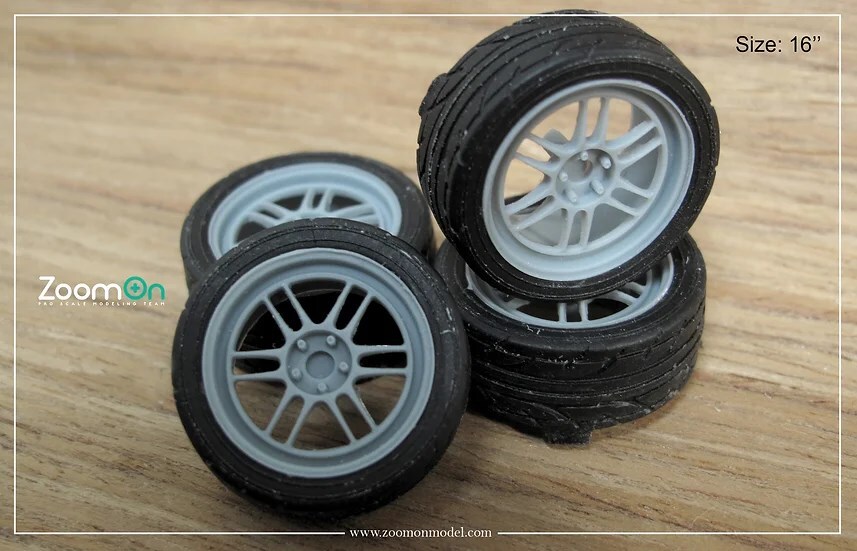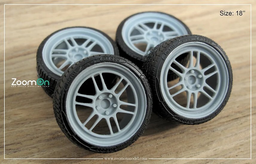 ZoomOn ZR057 1/24 18'' Enkei RPF1 rim set -- In scale, 18'' -- 1 set of rims -- 1 set of tires
