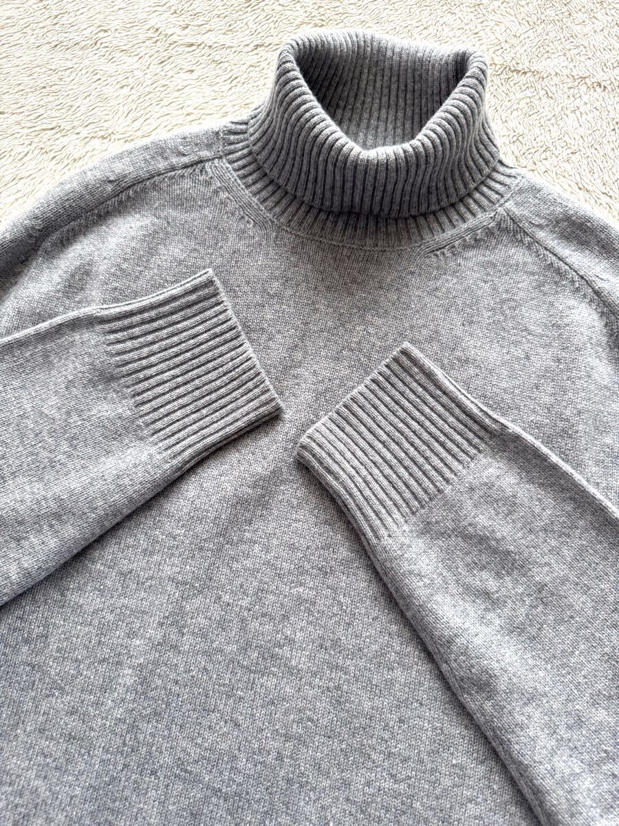 グレーカラーのタートルネックセーターは、とても合わせやすく使い勝手も良いので最高級の一着を持っているととても重宝してくれると思います。