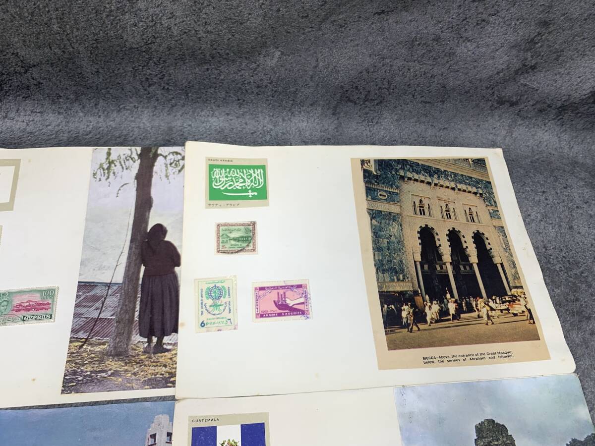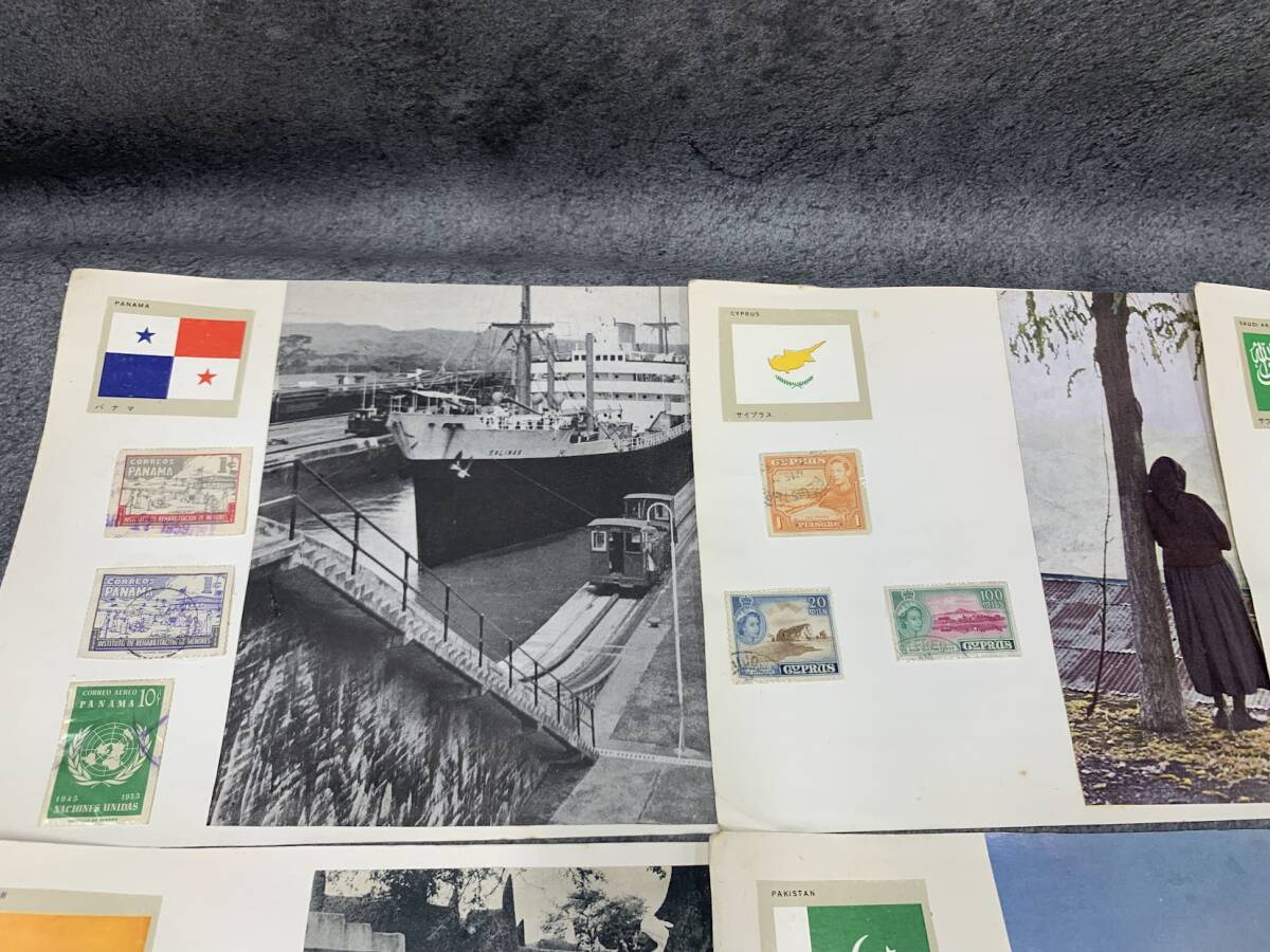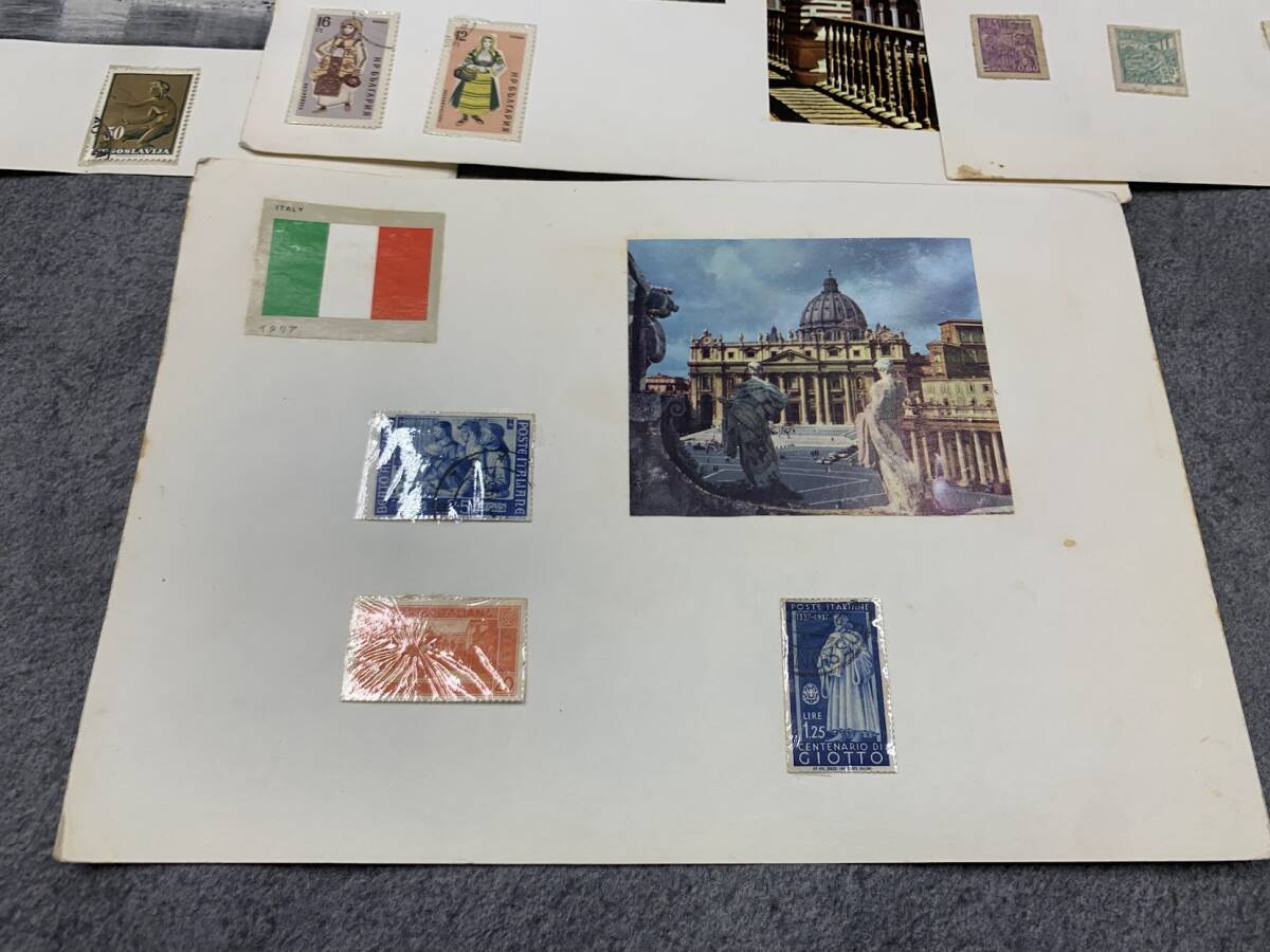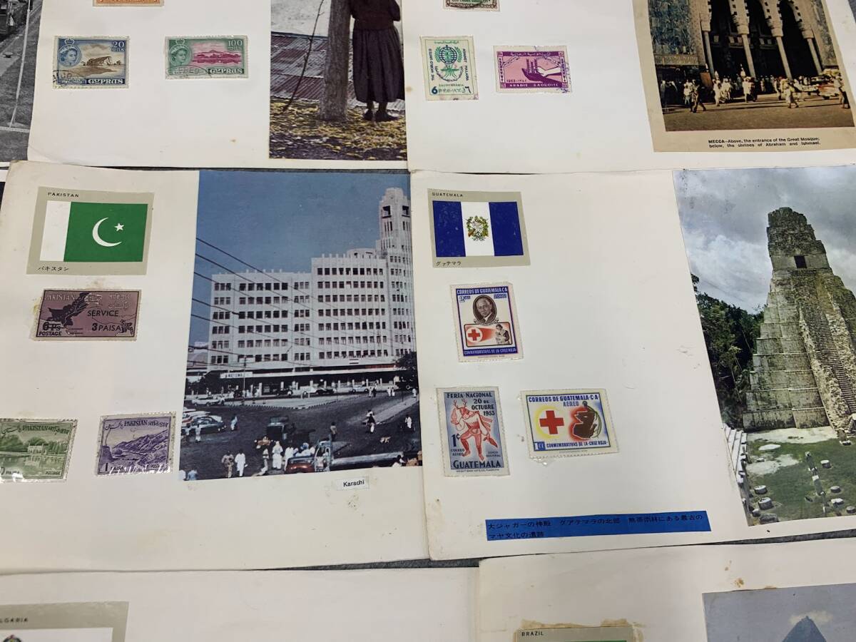 画用紙に古い切手等を貼ってある手作りの各国紹介紙です。コレクション、資料にいかがでしょうか?
