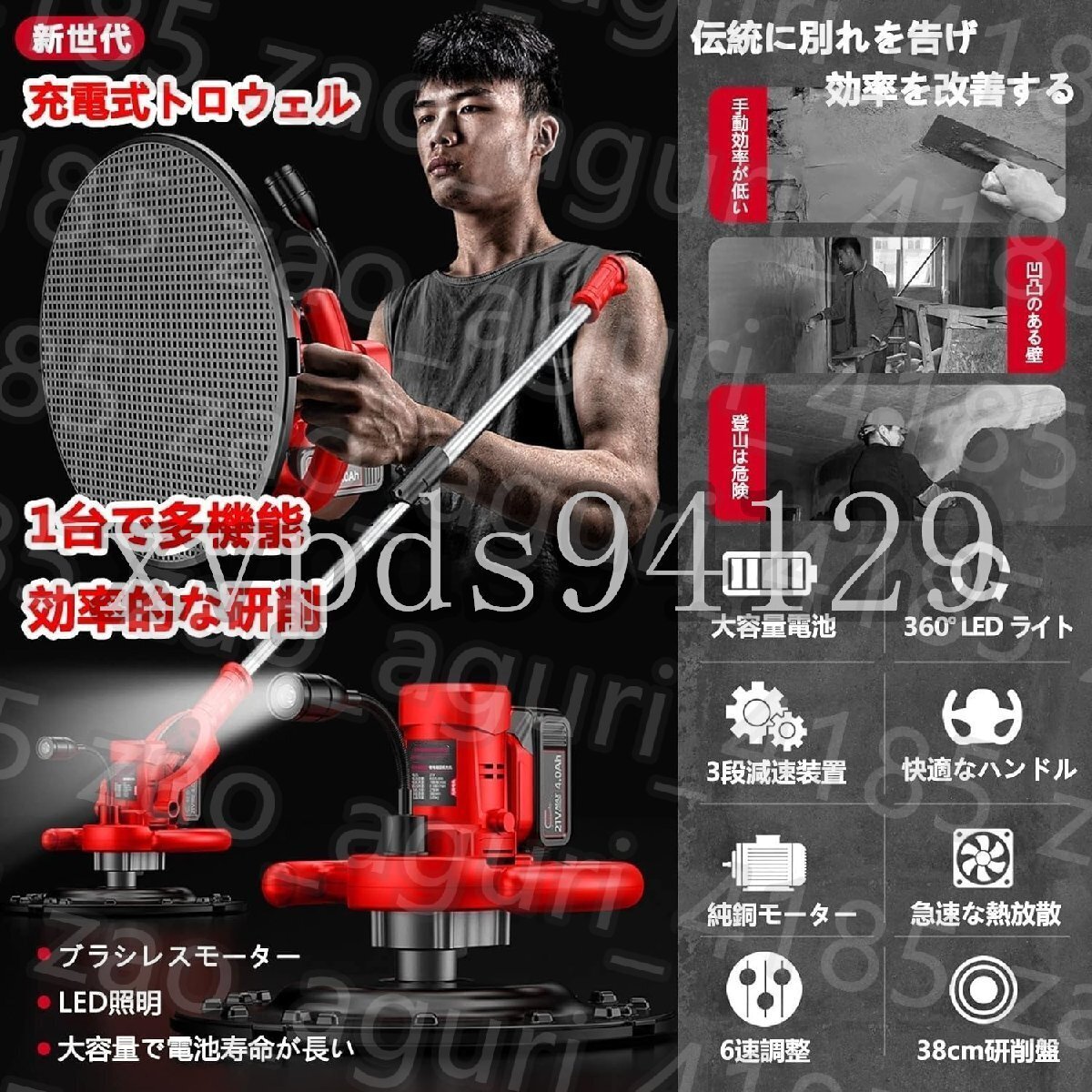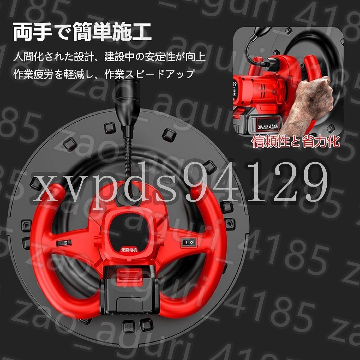 【作業効率の向上】充電式トロウェルモルタルやセメントの凹凸を簡単に取り除き、広い面積でコンクリートの床を平らにすることができます。作業効率をスピードアップし、時間と労力を節約し、作業結果の品質を向上させます。この製品は、他の研磨機のさまざまな直径 38cm アクセサリーにも適しています。