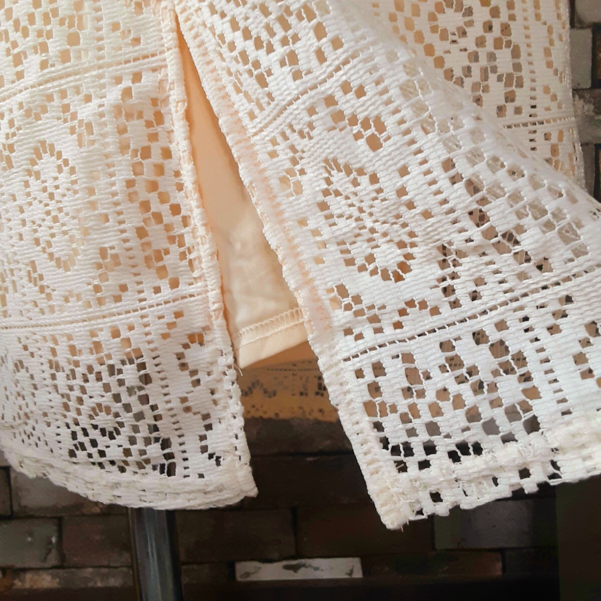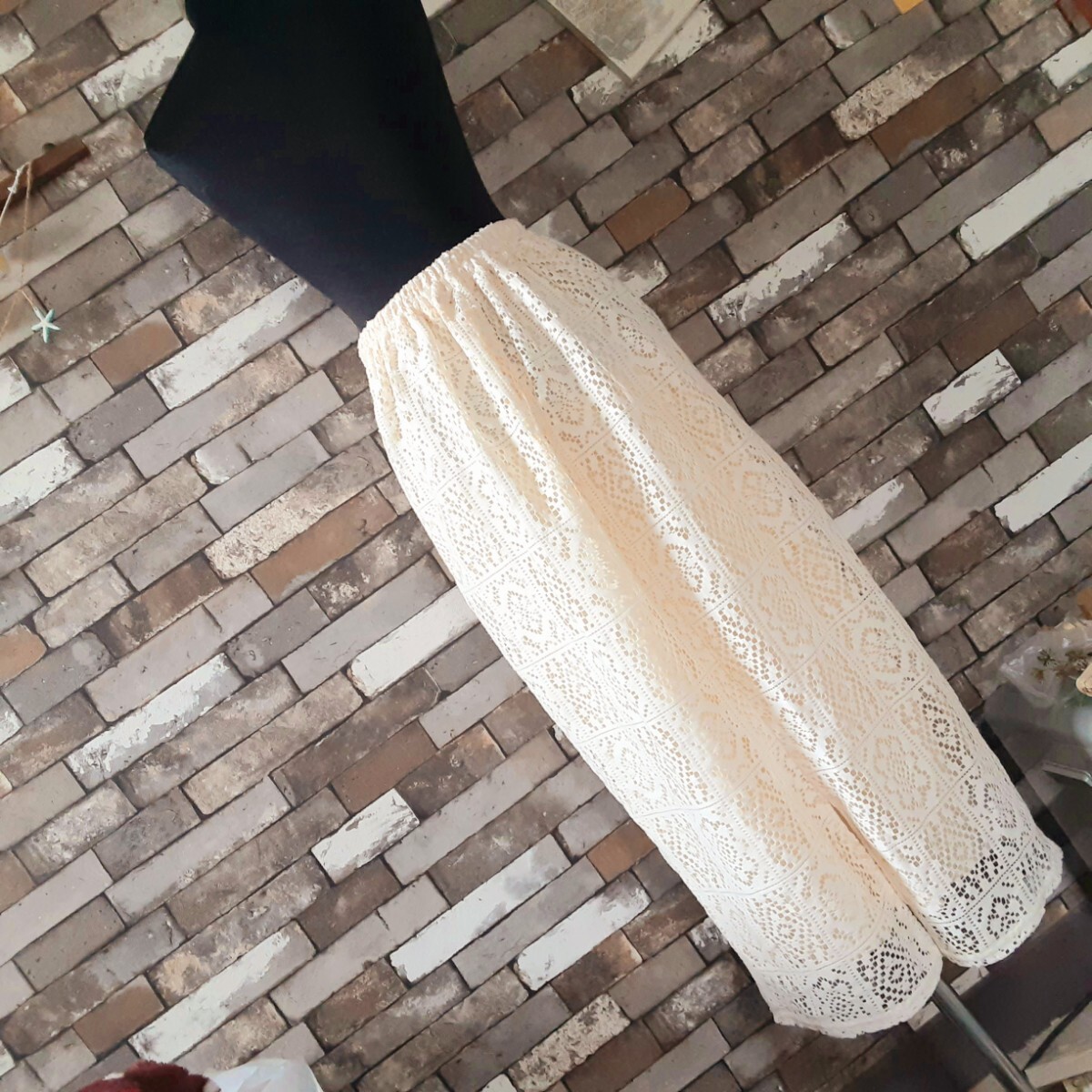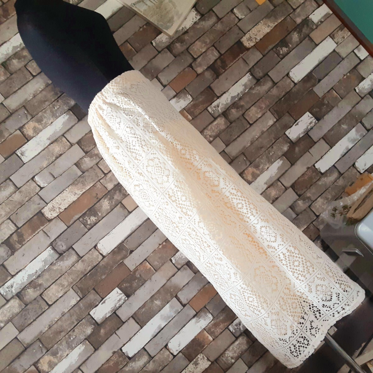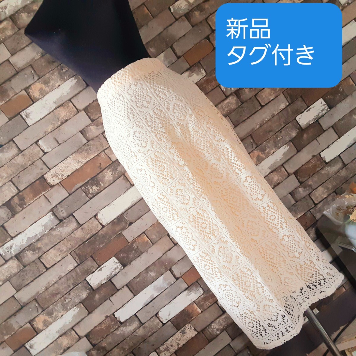 ロングスカート アイボリー タイト ウエストゴム 透かし織り