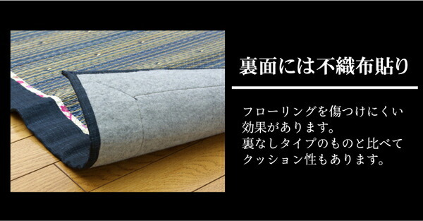 | 表地=い草※普通織 裏地=不織布(ポリエステル100%) ヘリ=綿100% |