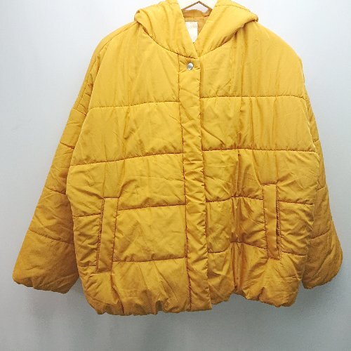 ◇ earth music&ecology アース フーディー 無地 ゆったり 長袖 中綿ジャケット サイズL オレンジ レディース E