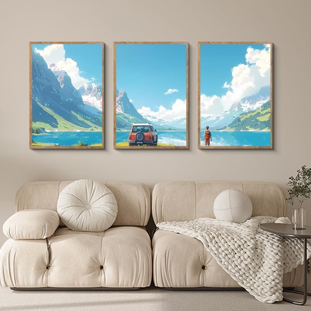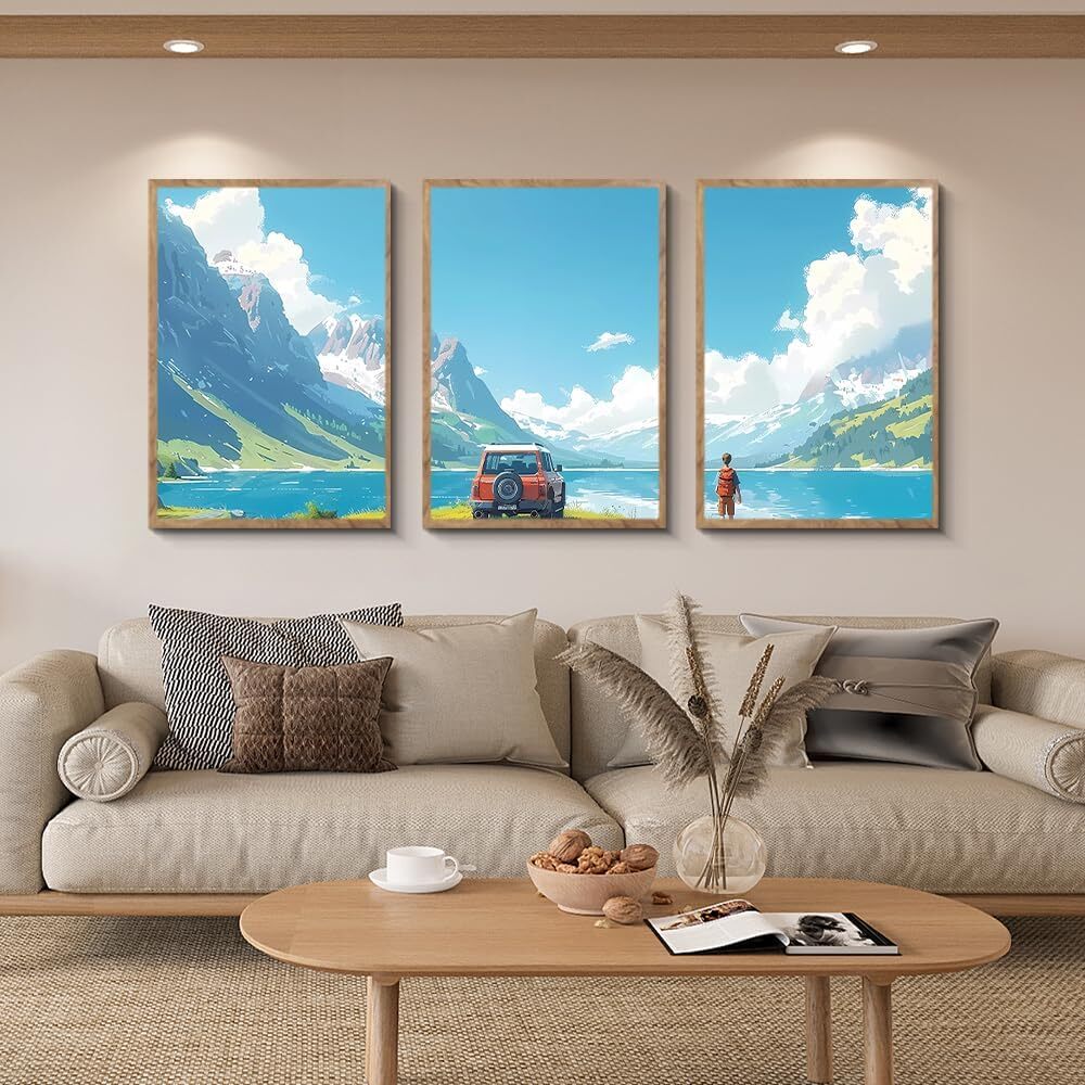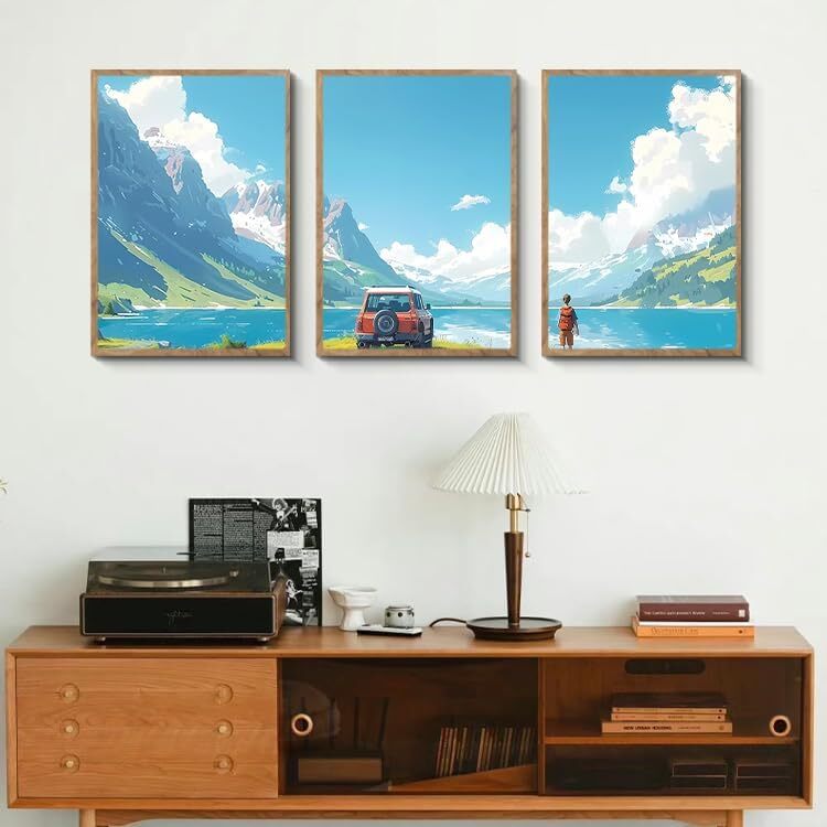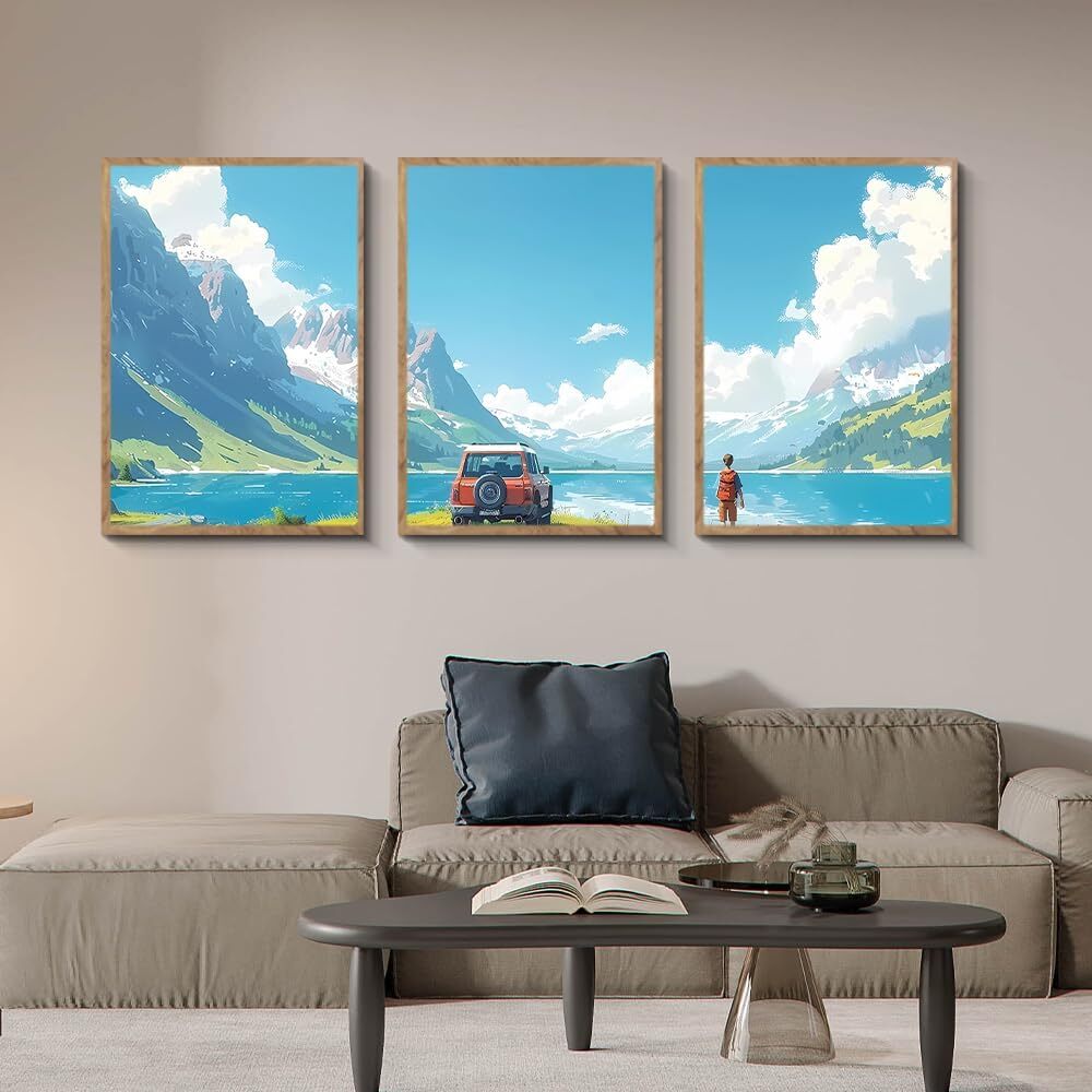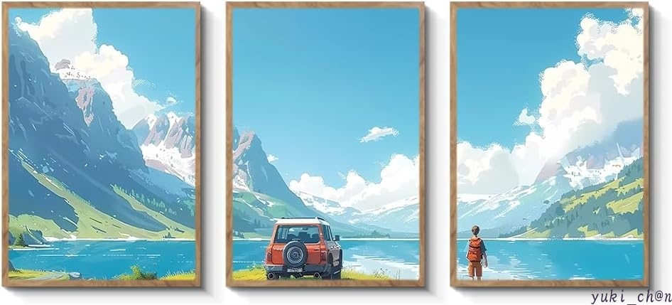 アートパネル アートボード 30×40×3枚 空 山 湖 雲 ポスター 壁掛け 壁飾り 飾り絵 インテリア モダン 額付き 木枠付きの完成品 木目調