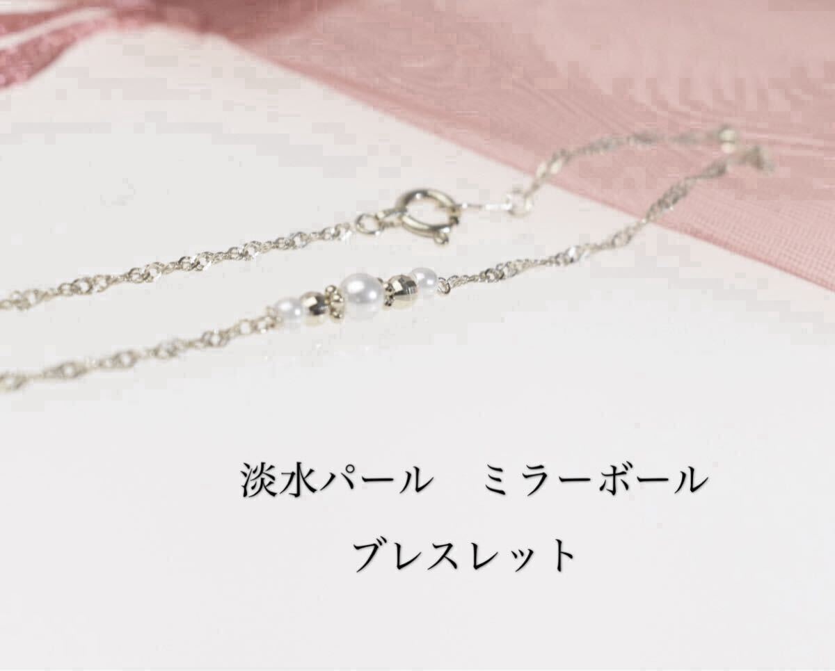 pt850 18cm プラチナ 淡水パール ブレスレット スクリューチェーン0.9mm