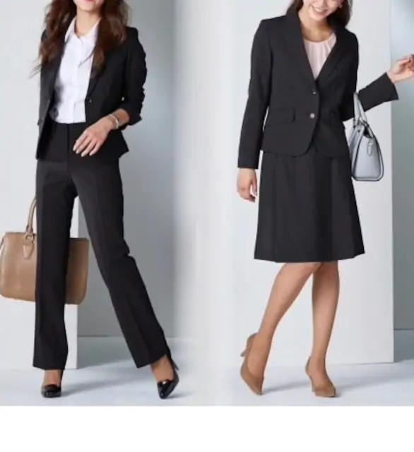 新品☆9号♪黒系無地♪パンツ&スカートスーツセット♪オールシーズン〇D321
